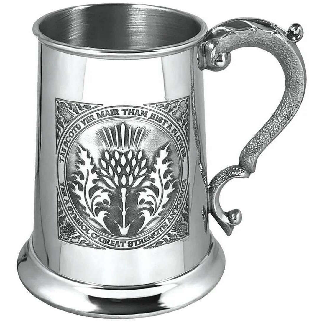 Engels tinnen bedrijf 1pt tae a thistle tankard - zilver