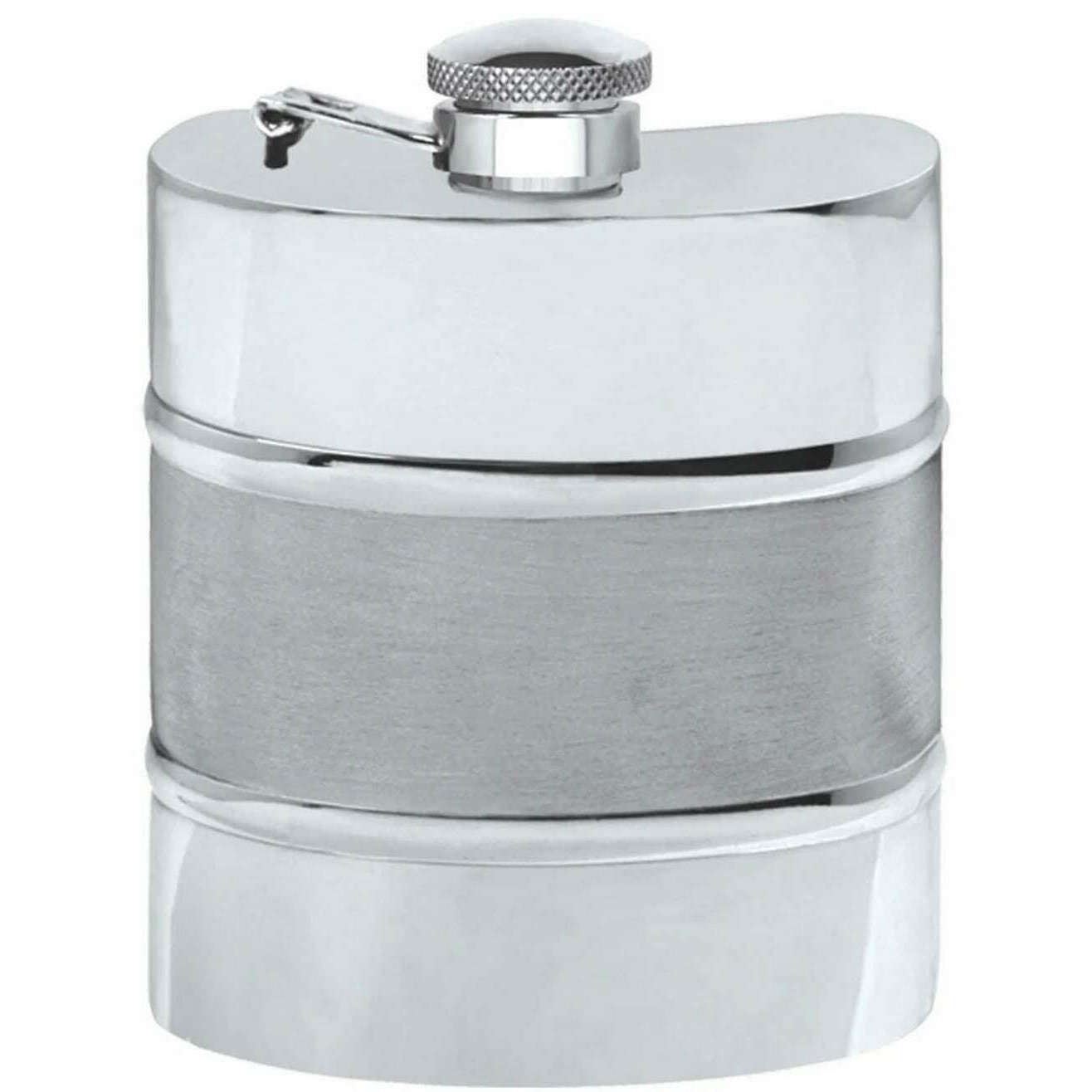 Engels tinbedrijf 6oz Captive Top Satin Band Flask - Silver