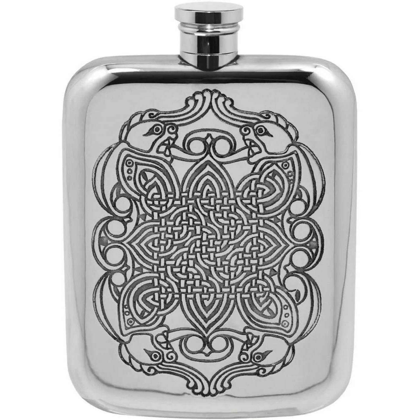 Engels tinbedrijf 6oz Celtic Purse Purse Flask - zilver