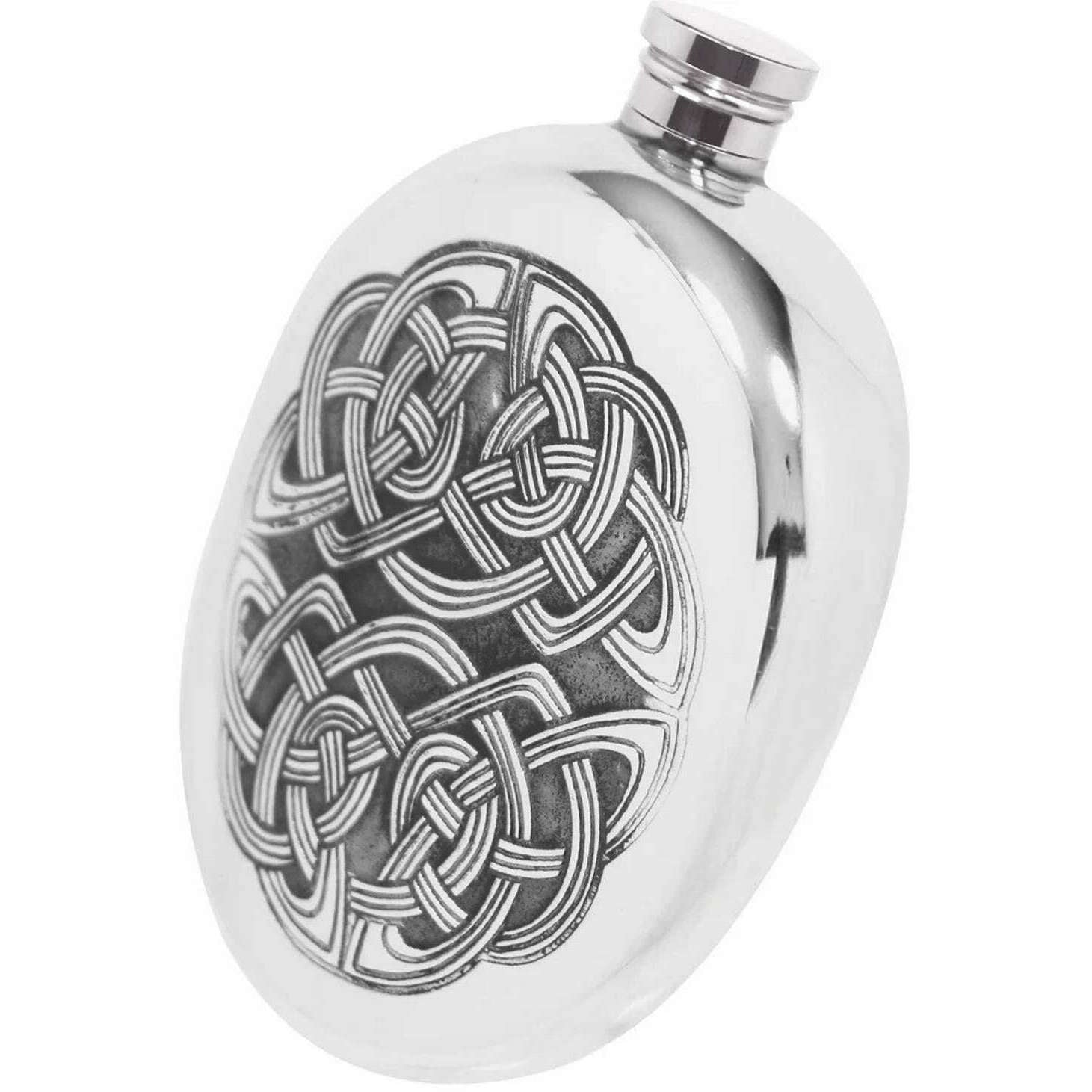 Engels tinnen bedrijf 6oz Celtic Wedge Flask - zilver