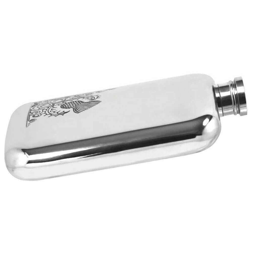 Engels tinnen bedrijf 6oz hoek distel portemonnee flesfles - zilver