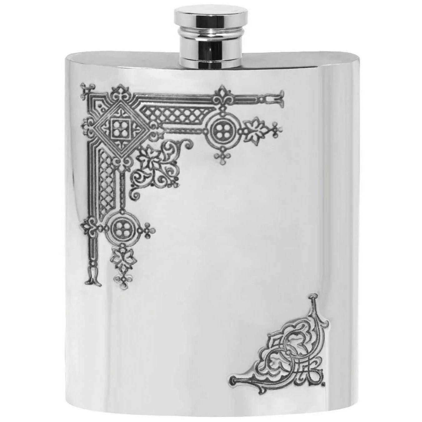 Engels tinnen bedrijf 6oz gotische heup kolf - zilver