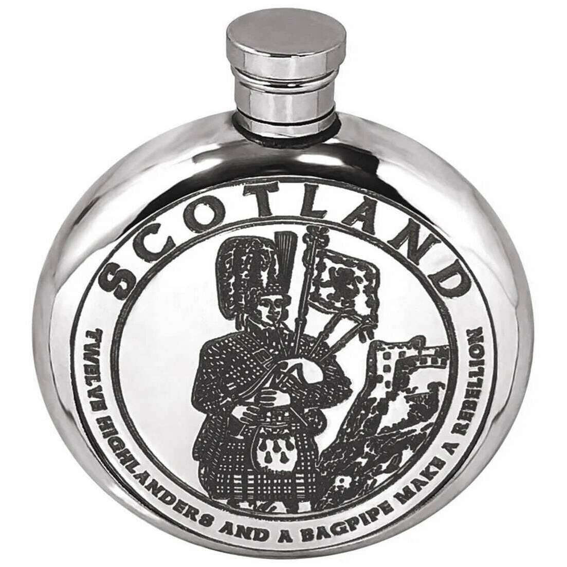 Engels tinnen bedrijf 6oz Highland Piper Flask - zilver