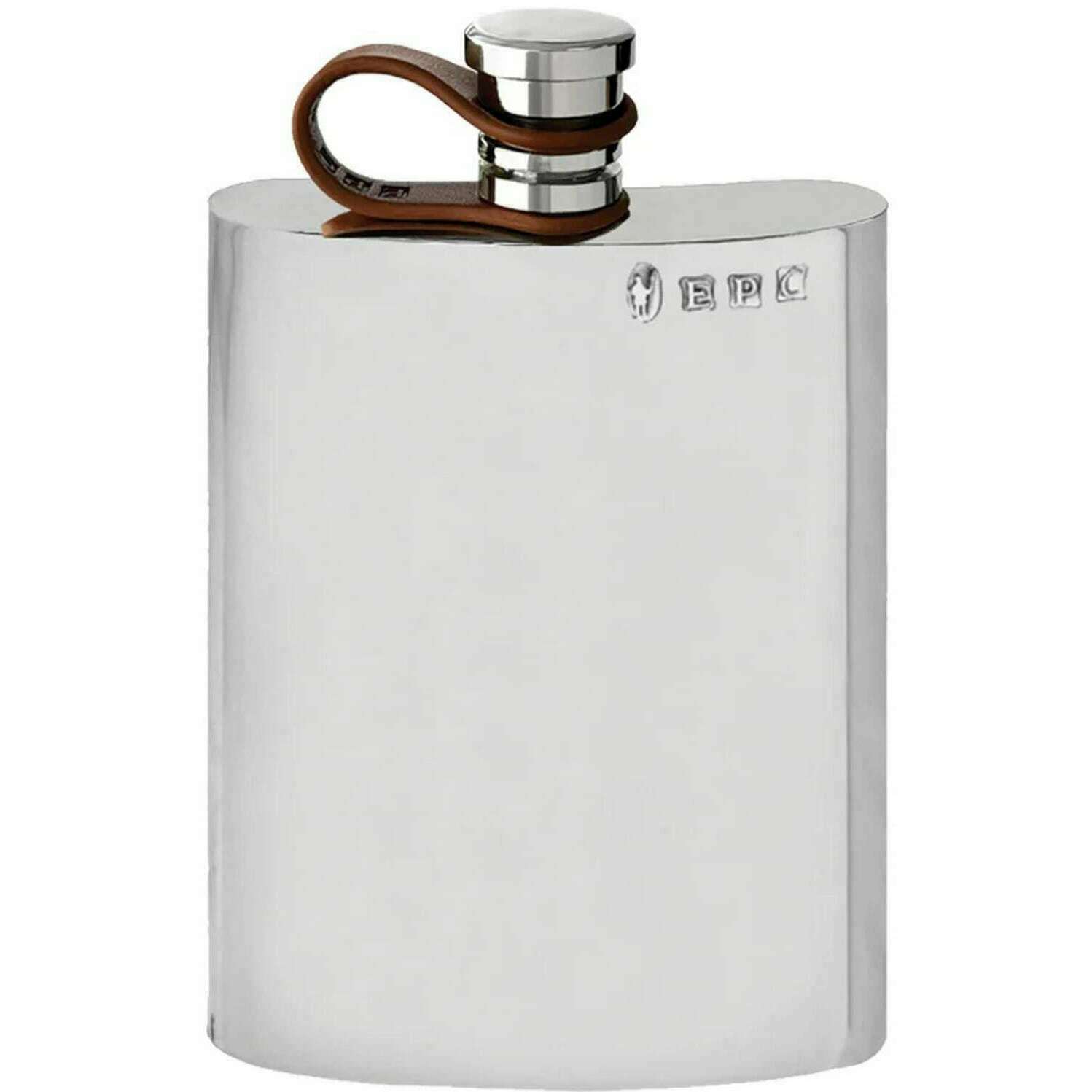 Engels tinnen bedrijf 6oz gewoon lederen flexi cap heup kolf - zilver