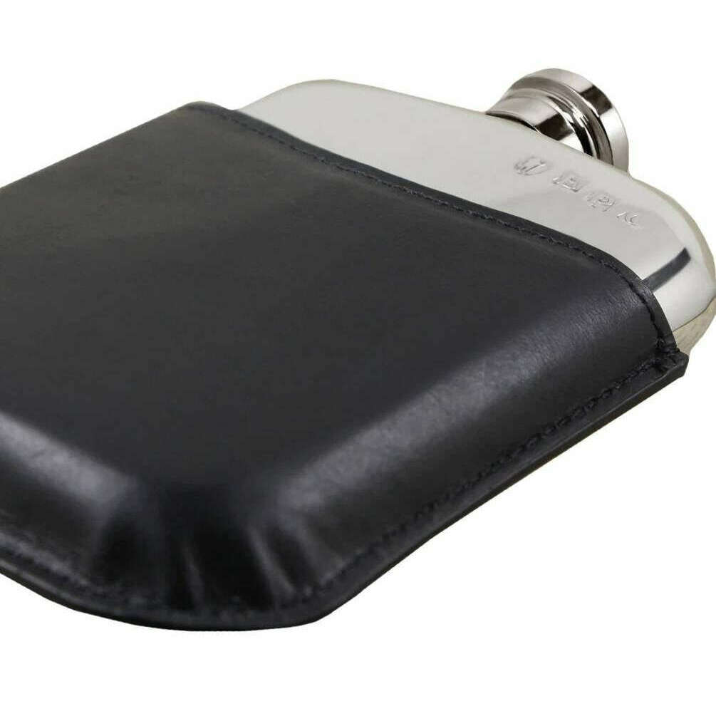 Engels tinnen bedrijf 6oz portemonnee kolf en zak - zilver/zwart