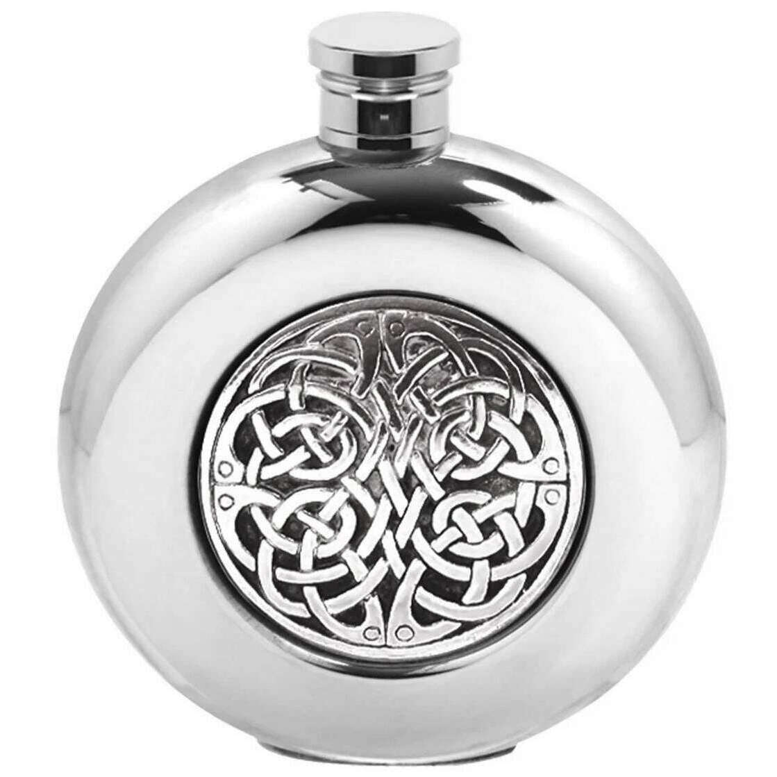 Engels tinbedrijf 6oz ronde Celtic Disk Flask - zilver