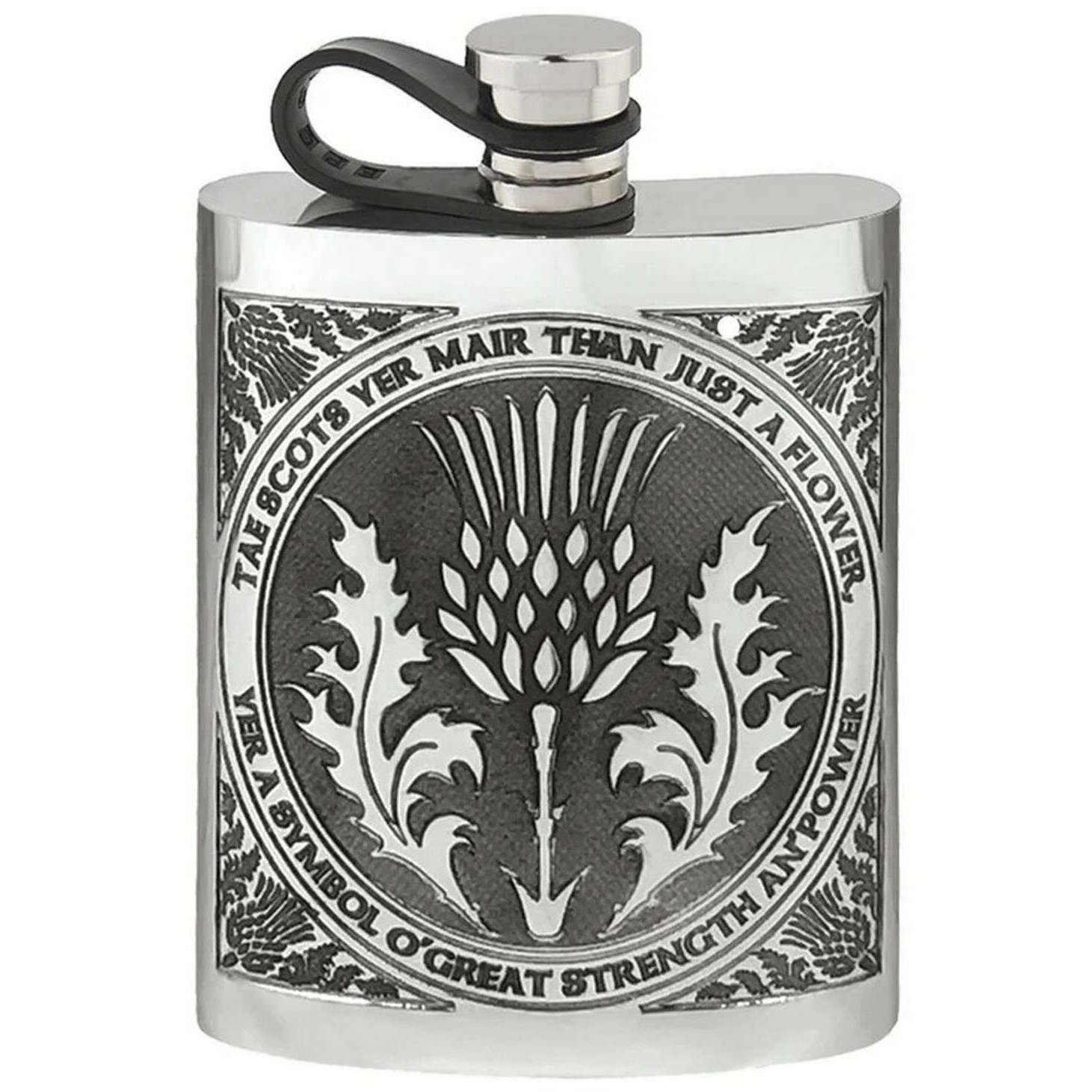 Engels tinnen bedrijf 6oz tae a thistle flexi cap heup kolf - zilver