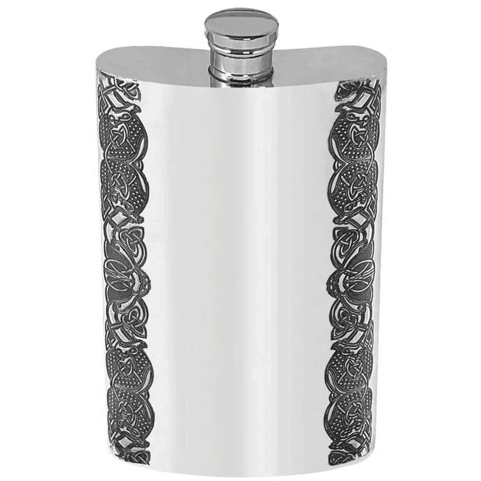 Engels tinnen bedrijf 8oz Celtic Hip Flask - zilver