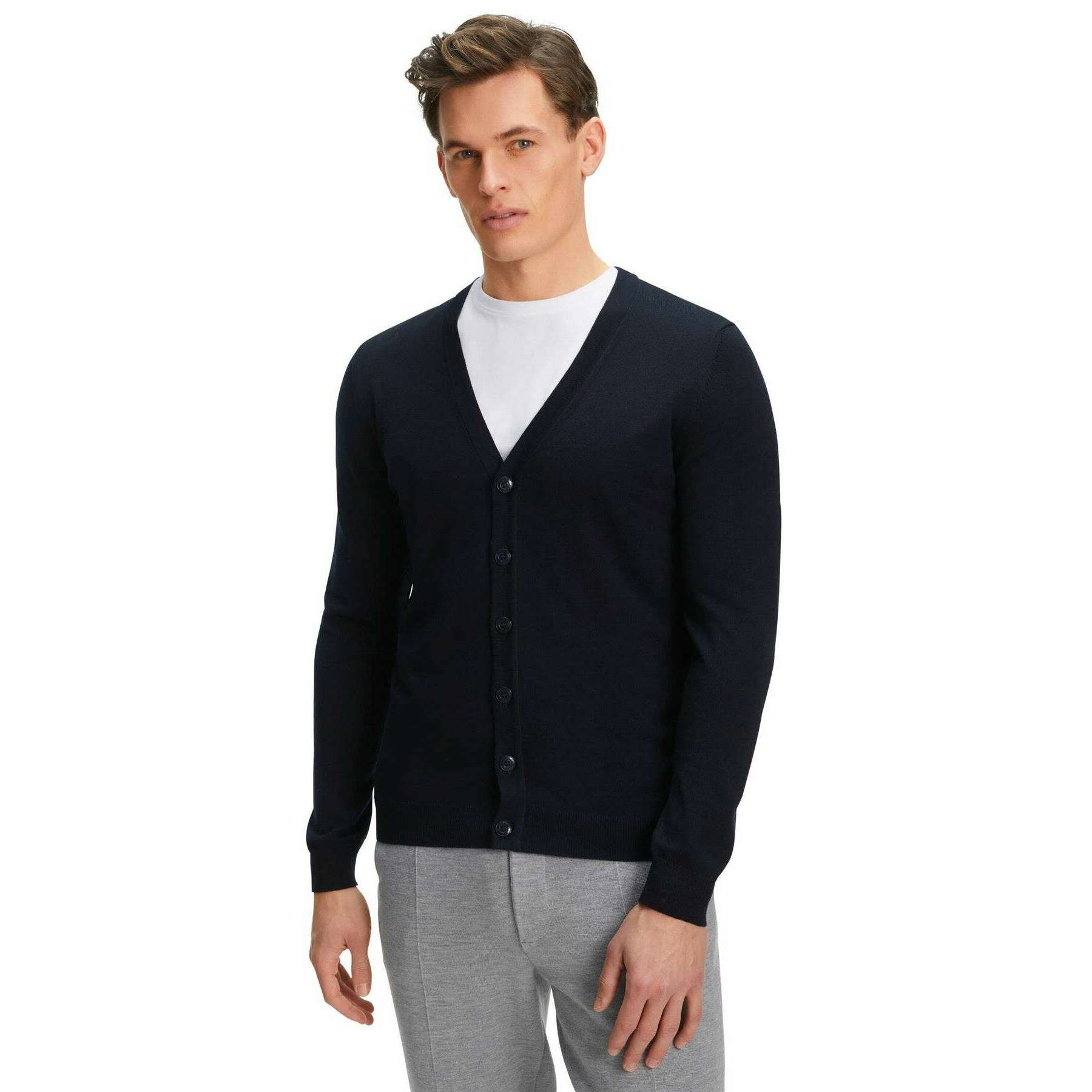 • Gebreid jersey, Franse schoudernaden, fijn geribde knoopsluiting, elastische geribbelde manchetten aan de romp en mouwen, merinowol zonder mulesing, normale pasvorm