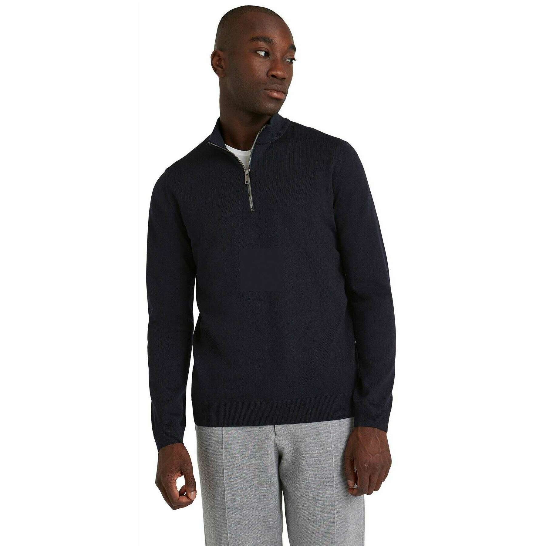 Falke Merino X-Fine trui met halve rits - Night Sky Navy