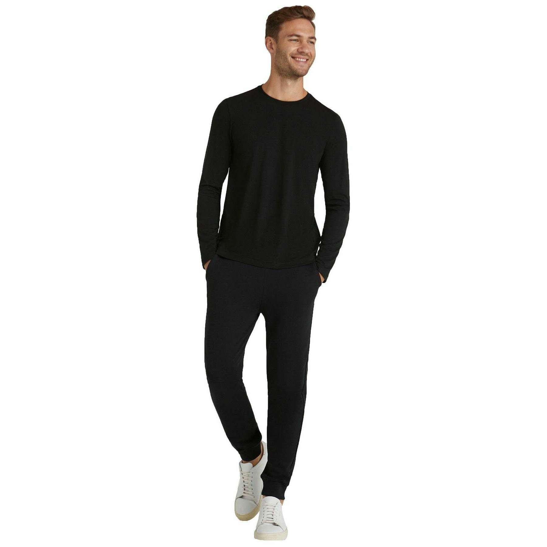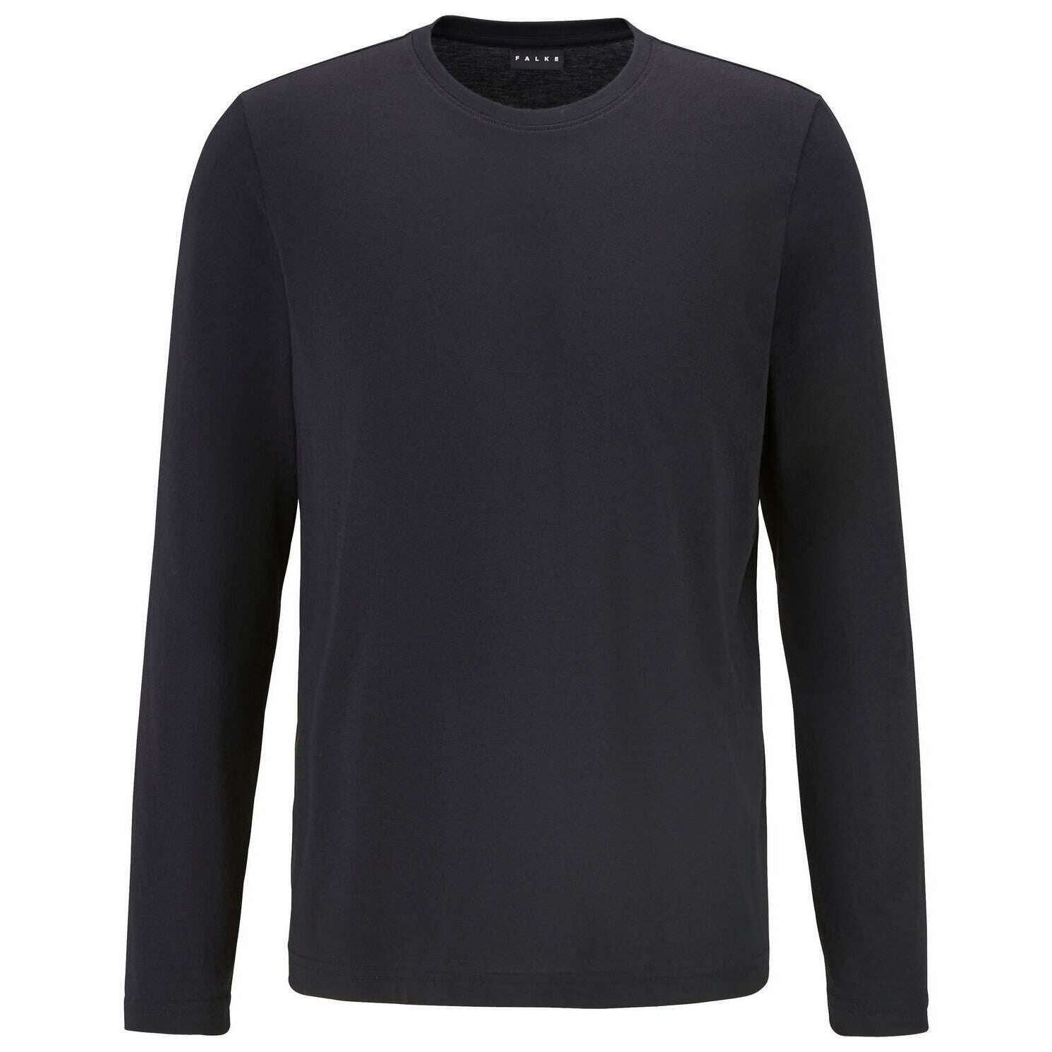 Falke Pima Jersey T-shirt met ronde hals en lange mouwen - Zwart