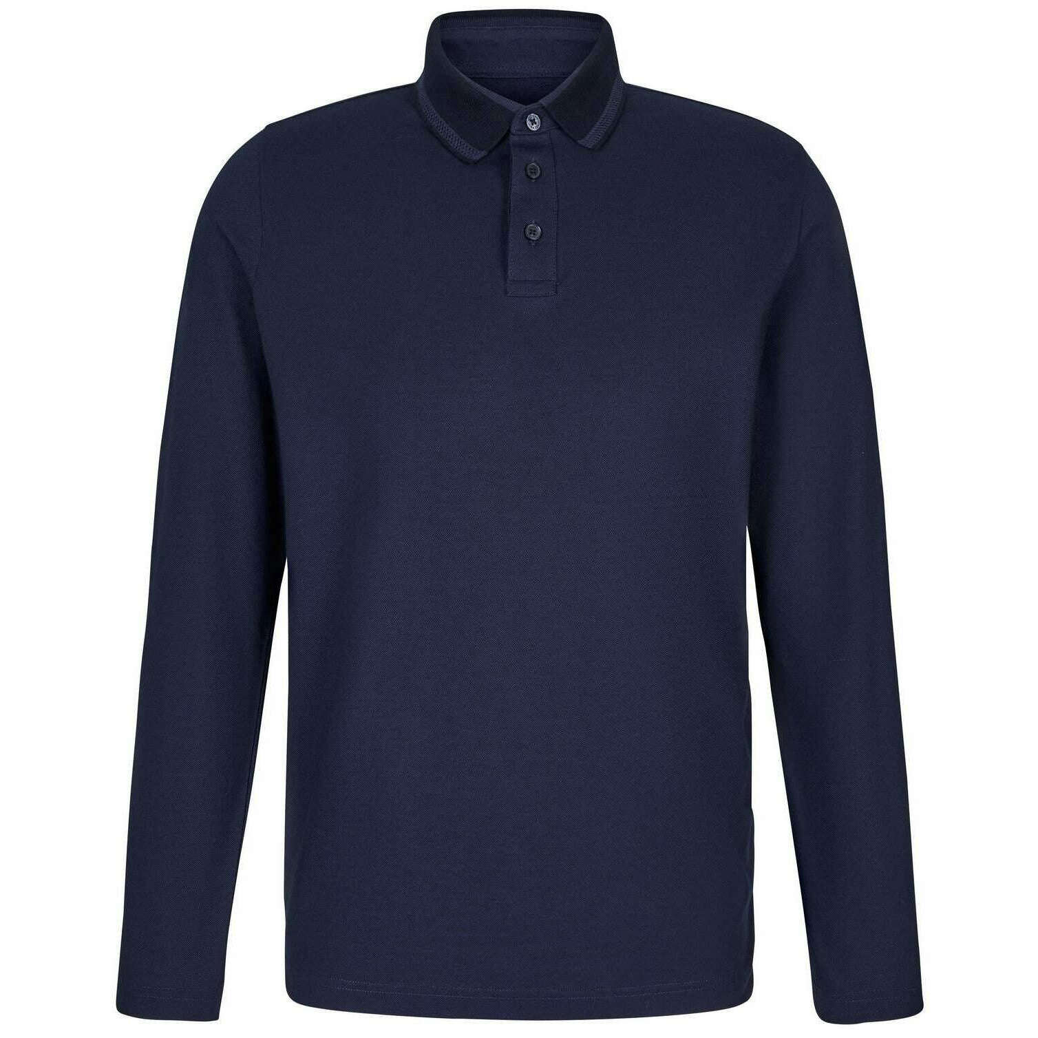 Falke Pima piqudetail poloshirt met lange mouwen - blauw
