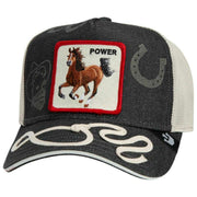 Deze unisex full-throttle trucker hat van het merk Goorin Bros is gemaakt van 57% polyester en 43% katoen en is uitgevoerd in het marineblauw. Alle hoeden worden compleet geleverd met goorin bros-tags. De Goorin Bros Full Throttle Trucker Hat - Navy Blue is een eerbetoon aan pure, ongeremde vrijheid. Het dynamische paardenveld trekt onmiddellijk de aandacht en legt de kracht en het momentum vast van een mustang die niet getemd kan worden. Het stoere denim voorpaneel past perfect bij crèmekleurige mesh, waardoor een look ontstaat die zowel stoer als authentiek westers is. Casual lassoborduurwerk op de klep voegt een uniek vleugje vakmanschap toe, terwijl subtiele hoefijzerprints het eerbetoon van de pet aan kracht, lef en onstuitbare drive versterken. Met een verstelbare snapback zorgt hij voor een perfecte pasvorm voor elk avontuur. Voor degenen die hun kracht niet alleen voelen, maar deze ook met trots dragen, onderscheidt deze pet zich in alle opzichten van de massa. Een waar statement voor vrije geesten en moderne ruiters.