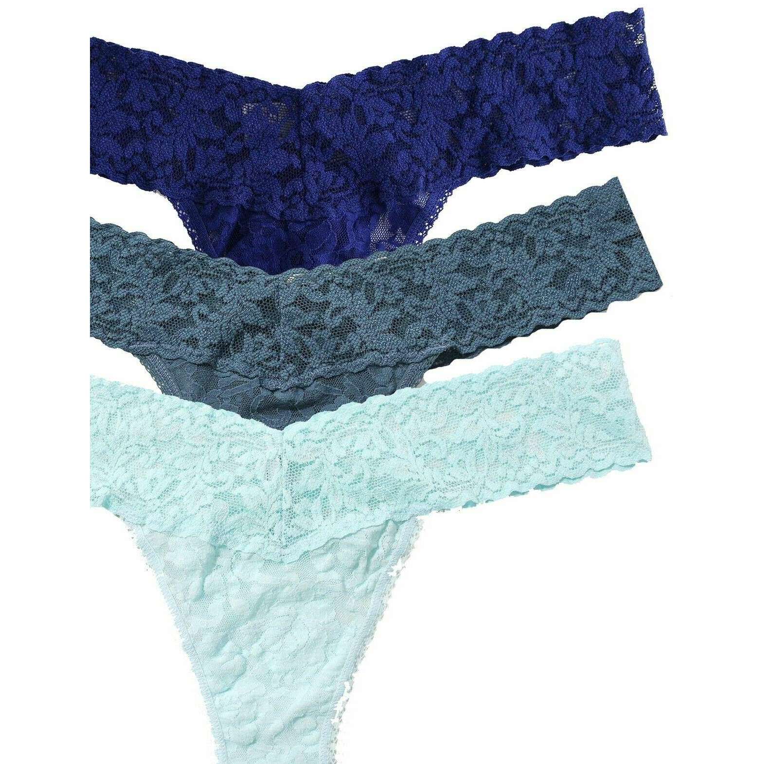 Hanky Panky Signaure Kanten Set van 3 Strings Met Lage Taille - Odyssey Blauw/Storm Cloud/Celeste