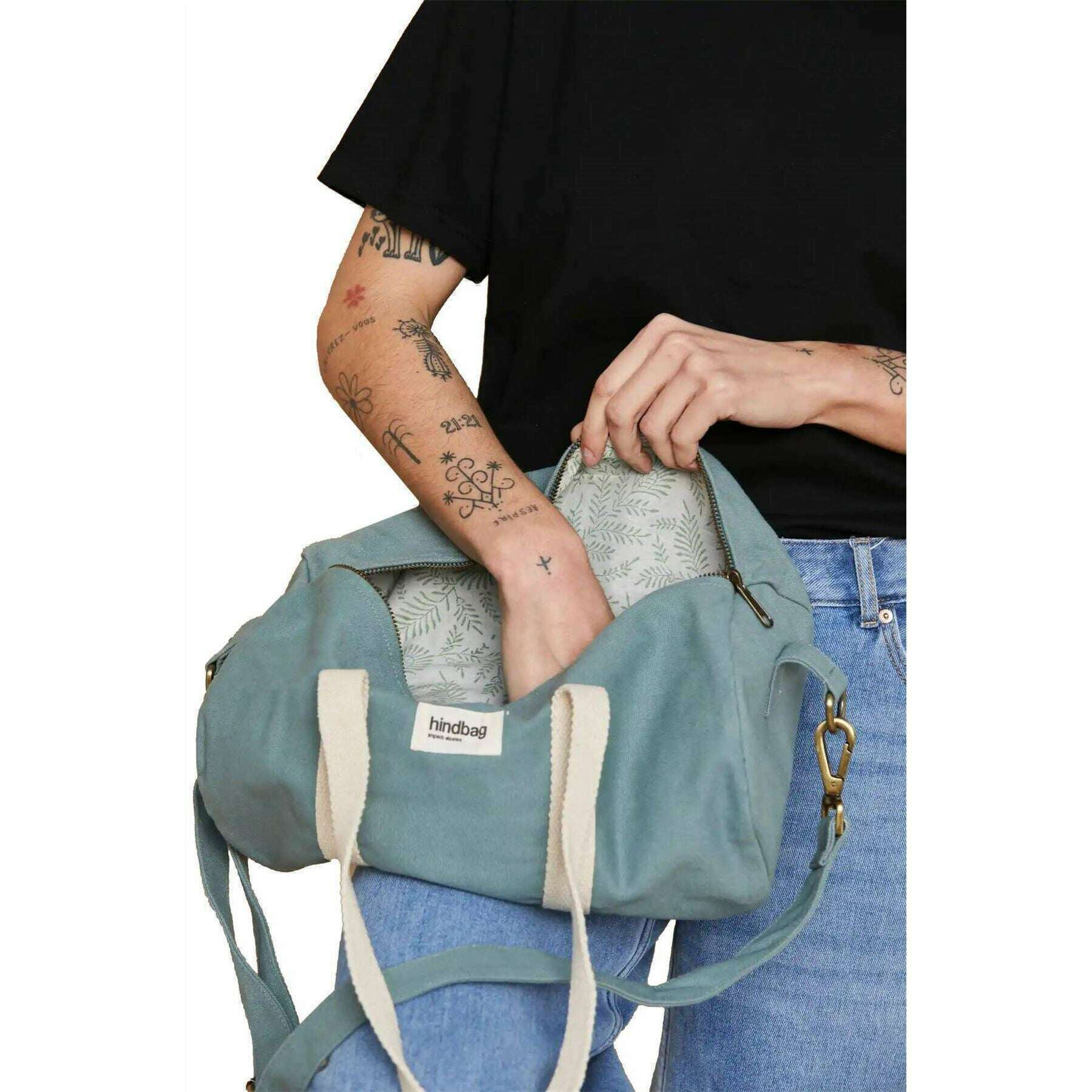 Designer Hindbag heeft u deze unisex 100% biologische katoenen tas met salie blauwe tonen gebracht. Het meet 18 cm (hoogte) x 35 cm (breedte) x 18 cm (diepte). Alle tassen worden compleet geleverd met een achterpakket. De Hindbag Mini Simon Small Duffle Bag - Sage Blue is een veelzijdige en milieubewuste reisgenoot die is ontworpen voor diegenen die functionaliteit zoeken zonder in te schakelen op stijl. Met een buitenste zak met rits en verstelbare schouderriem voor comfort, biedt deze plunjezak voldoende ruimte voor essentie met behoud van een strak profiel, waardoor het ideaal is voor weekenduitstapjes, gymsessies of dagelijkse woon -werkverkeer.