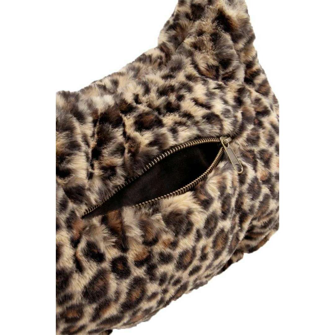 Hindbag rosa grote schoudertas - faux bont luipaard bruin
