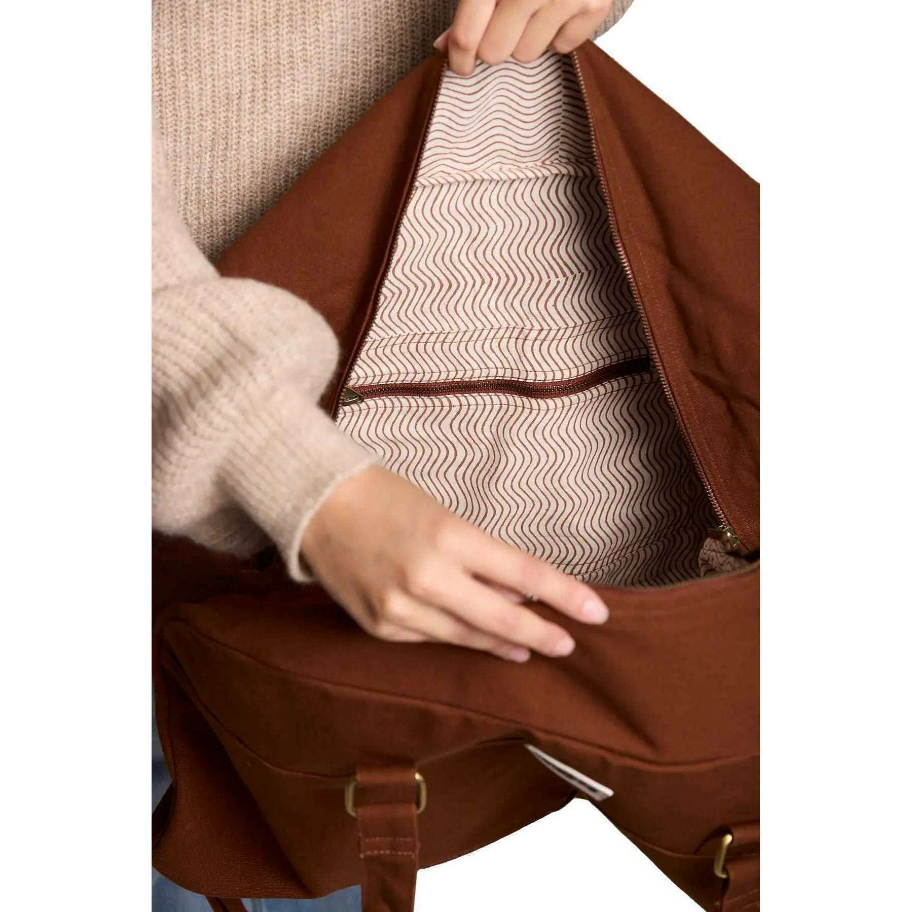 Deze unisex Yves grote reistas is gemaakt van 100% biologisch katoen, te zien in een bruine kleur en is van het merk Hindbag. Het meet 33 cm (hoogte) x 54 cm (breedte) x 24 cm (diepte). Alle tassen worden compleet geleverd met een achterpakket. De Hindbag Yves grote reistas - Chocolade Brown is een ruime en milieuvriendelijke optie voor reizigers. Deze tas is gemaakt van dik, GOTS-gecertificeerd organisch katoen en beschikt over meerdere zakken voor organisatie, een veilige ritssluiting en een bedrukte binnenvoering die een vleugje elegantie toevoegt. Met zijn handgrepen en grote verstelbare schouderriem kan deze tas gemakkelijk met de hand of op de schouder worden gedragen.
