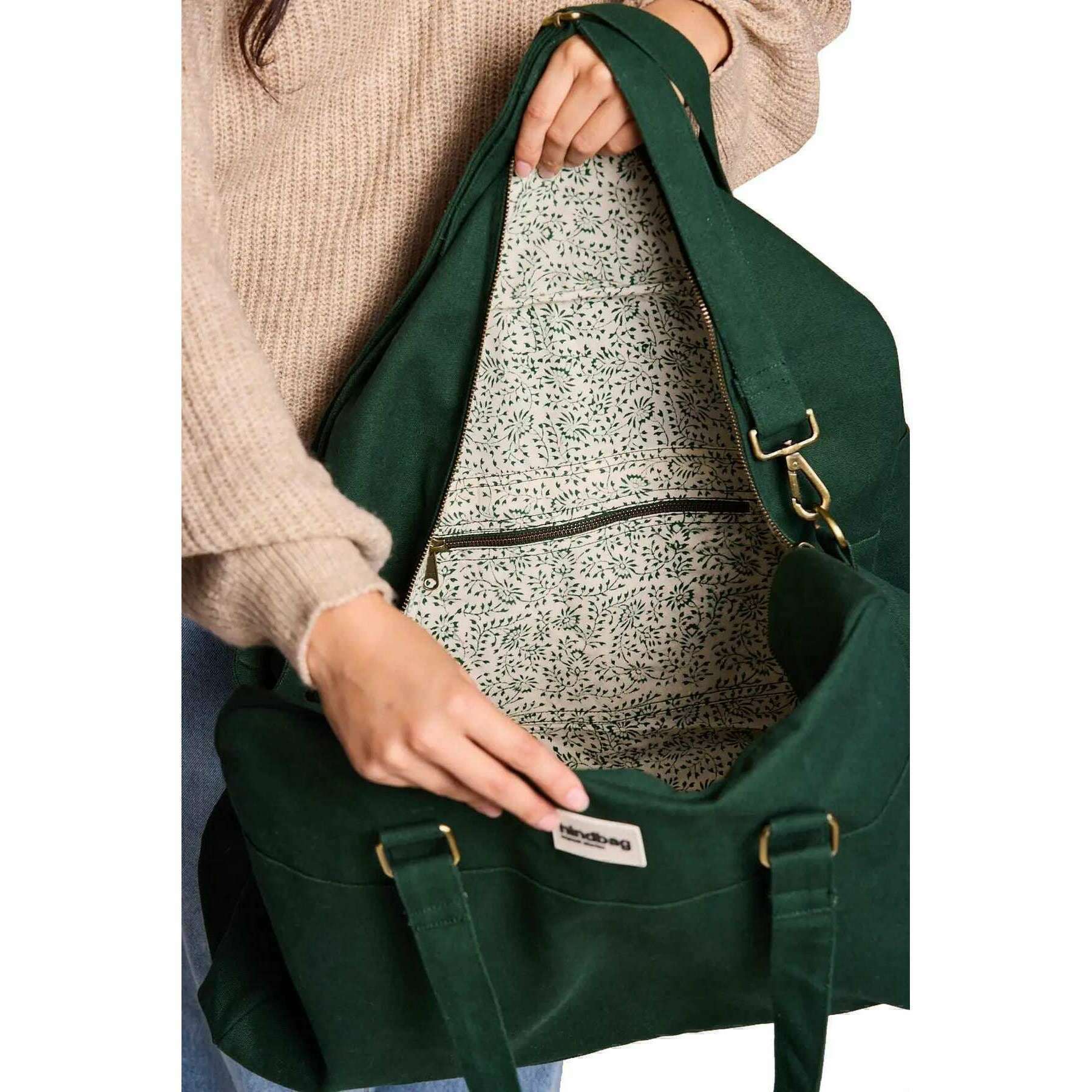 Deze unisex Yves grote reistas is gemaakt van 100% biologisch katoen, te zien in een groene kleur en komt uit het merk Hindbag. Het meet 33 cm (hoogte) x 54 cm (breedte) x 24 cm (diepte). Alle tassen worden compleet geleverd met een achterpakket. De Hindbag Yves grote reistas - Forest Green is een ruime en milieuvriendelijke optie voor reizigers. Deze tas is gemaakt van dik, GOTS-gecertificeerd organisch katoen en beschikt over meerdere zakken voor organisatie, een veilige ritssluiting en een bedrukte binnenvoering die een vleugje elegantie toevoegt. Met zijn handgrepen en grote verstelbare schouderriem kan deze tas gemakkelijk met de hand of op de schouder worden gedragen.