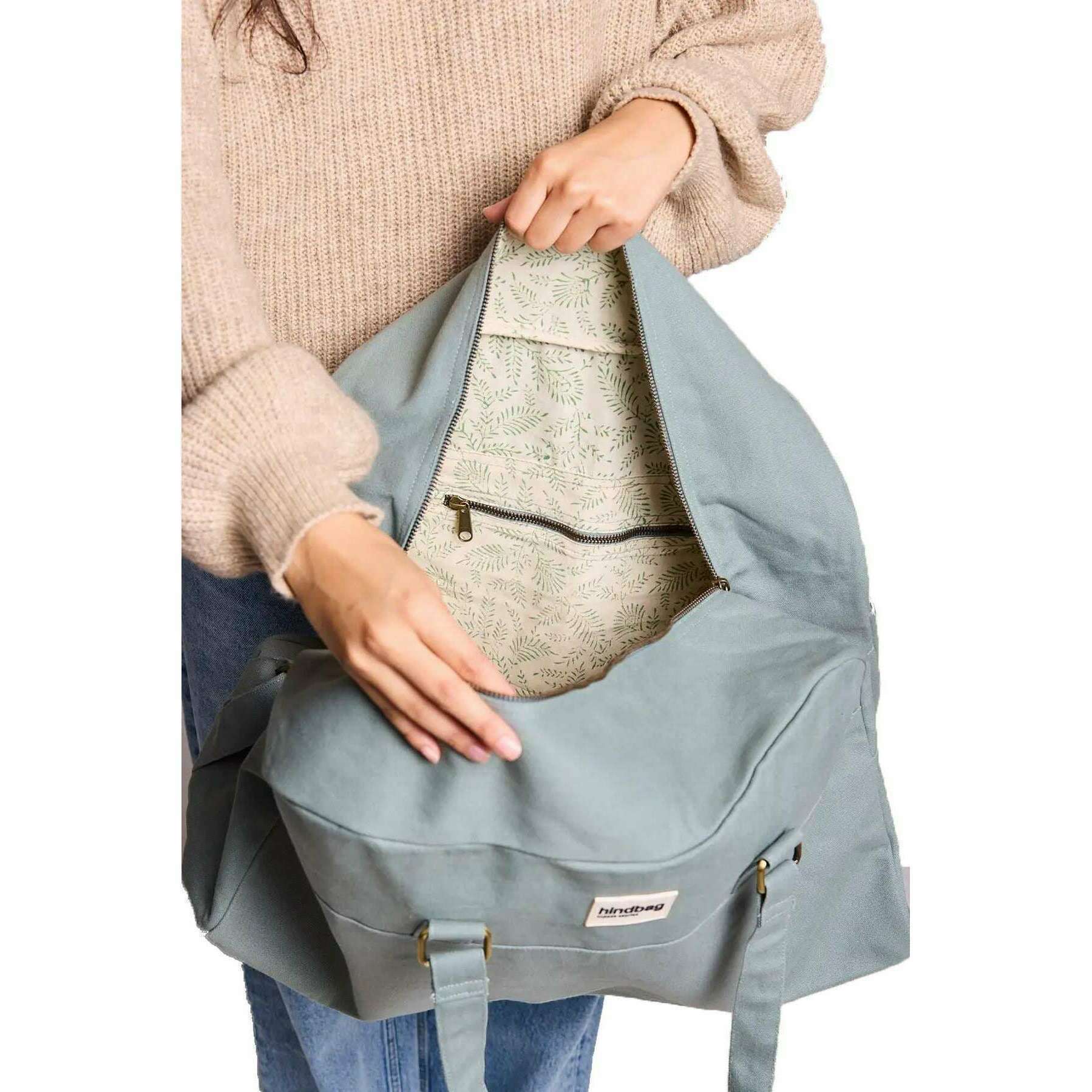 Deze goed gemaakte unisex Yves grote reistas van Hindbag wordt geleverd in een salie blauwe kleur en wordt vervaardigd van 100% biologisch katoen. Het meet 33 cm (hoogte) x 54 cm (breedte) x 24 cm (diepte). Alle tassen worden compleet geleverd met een achterpakket. De Hindbag Yves grote reistas - Sage Blue is een ruime en milieuvriendelijke optie voor reizigers. Deze tas is gemaakt van dik, GOTS-gecertificeerd organisch katoen en beschikt over meerdere zakken voor organisatie, een veilige ritssluiting en een bedrukte binnenvoering die een vleugje elegantie toevoegt. Met zijn handgrepen en grote verstelbare schouderriem kan deze tas gemakkelijk met de hand of op de schouder worden gedragen.