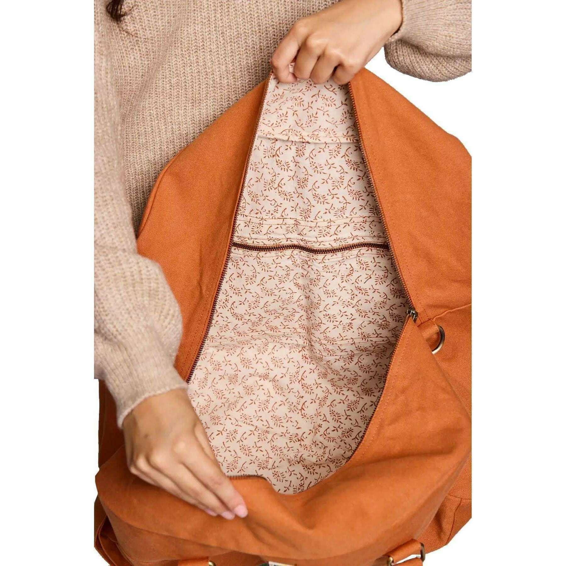 Perfect voor mannen of vrouwen is deze Hindbag Sienna Orange Yves grote reistas, hij is ook gemaakt van 100% biologisch katoen. Het meet 33 cm (hoogte) x 54 cm (breedte) x 24 cm (diepte). Alle tassen worden compleet geleverd met een achterpakket. De Hindbag Yves grote reistas - Sienna Orange is een ruime en milieuvriendelijke optie voor reizigers. Deze tas is gemaakt van dik, GOTS-gecertificeerd organisch katoen en beschikt over meerdere zakken voor organisatie, een veilige ritssluiting en een bedrukte binnenvoering die een vleugje elegantie toevoegt. Met zijn handgrepen en grote verstelbare schouderriem kan deze tas gemakkelijk met de hand of op de schouder worden gedragen.