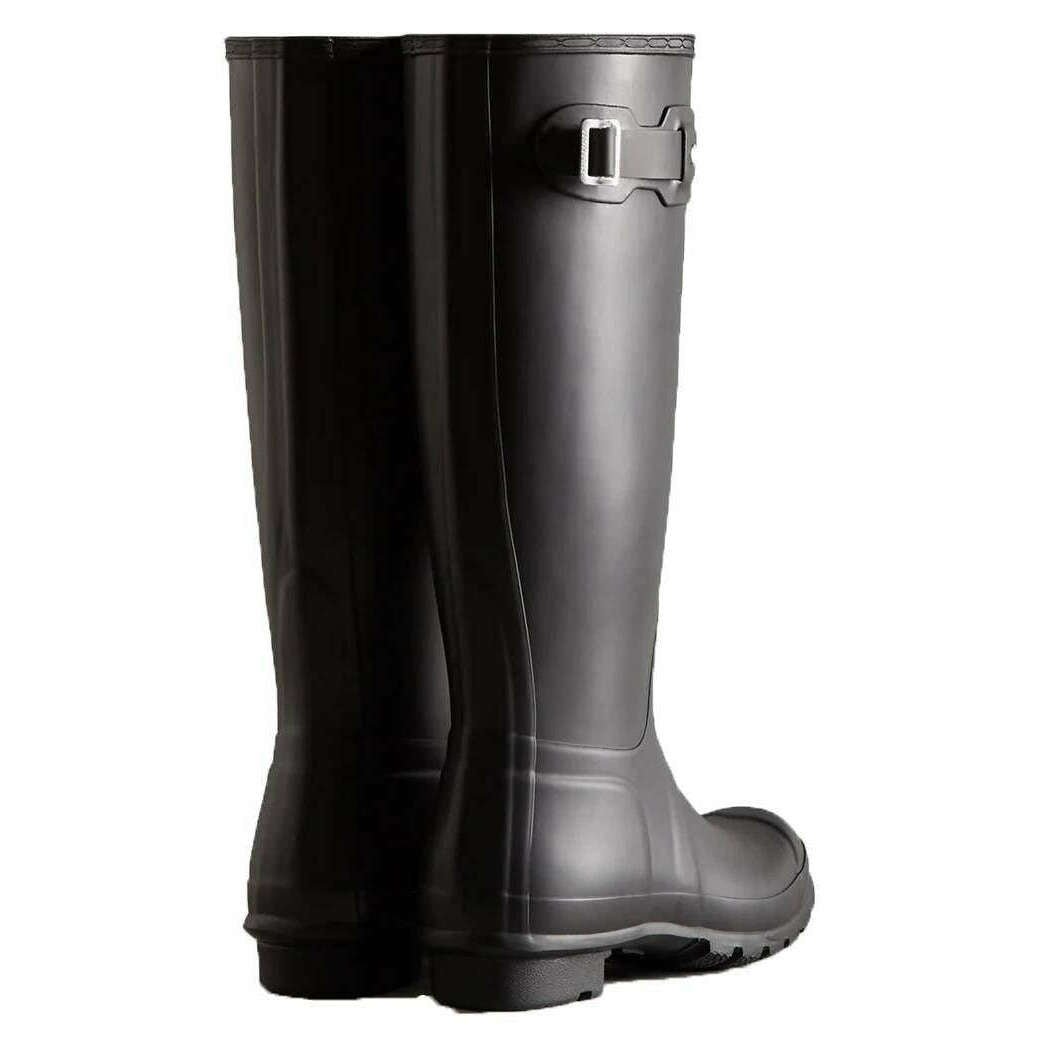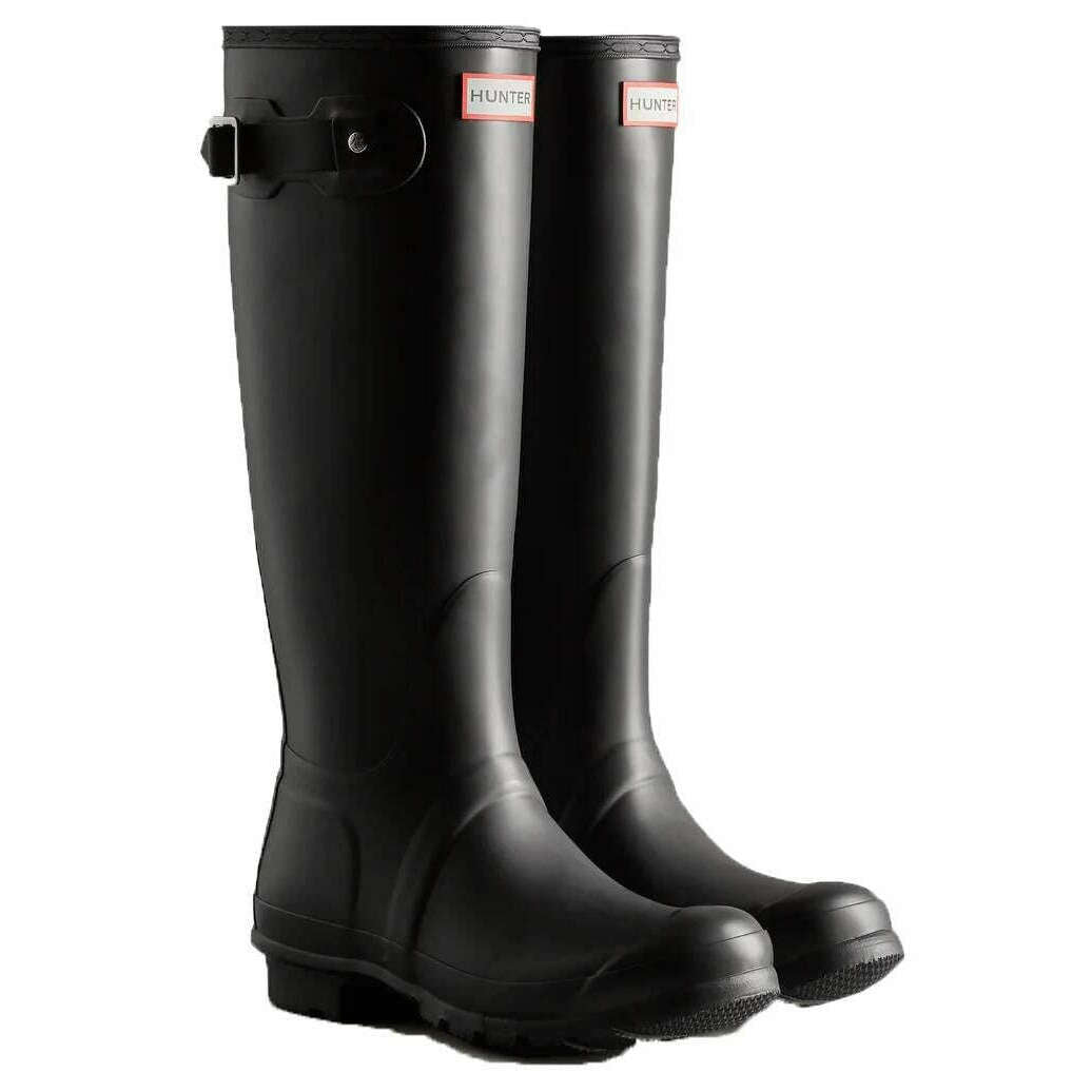 Deze originele hoge rubberlaarzen voor dames van het merk Hunter zijn gemaakt van 100% rubber en zijn uitgevoerd in het zwart. Alle rubberlaarzen worden compleet geleverd in een Hunter-verpakking. De Hunter Original Tall Wellington Boots - Zwart is een kernstijl in de Hunter-collectie en biedt betrouwbare bescherming sinds de introductie in 1956. Elk paar is handgemaakt uit 28 met de hand gesneden natuurlijke rubberen onderdelen, gedurende drie dagen gemonteerd op een op maat gemaakte aluminium leest en gevulkaniseerd voor superieure waterdichte prestaties. De laars is ontworpen met een matte afwerking en bevat het Hunter Original loopvlakpatroon samen met een bijgewerkte voering en binnenzool van gerecycled polyester voor extra comfort. Deze gecertificeerde veganistische laars is speciaal ontworpen om water af te stoten en het binnendringen van vocht te voorkomen en is een essentiële keuze voor slijtage bij nat weer.