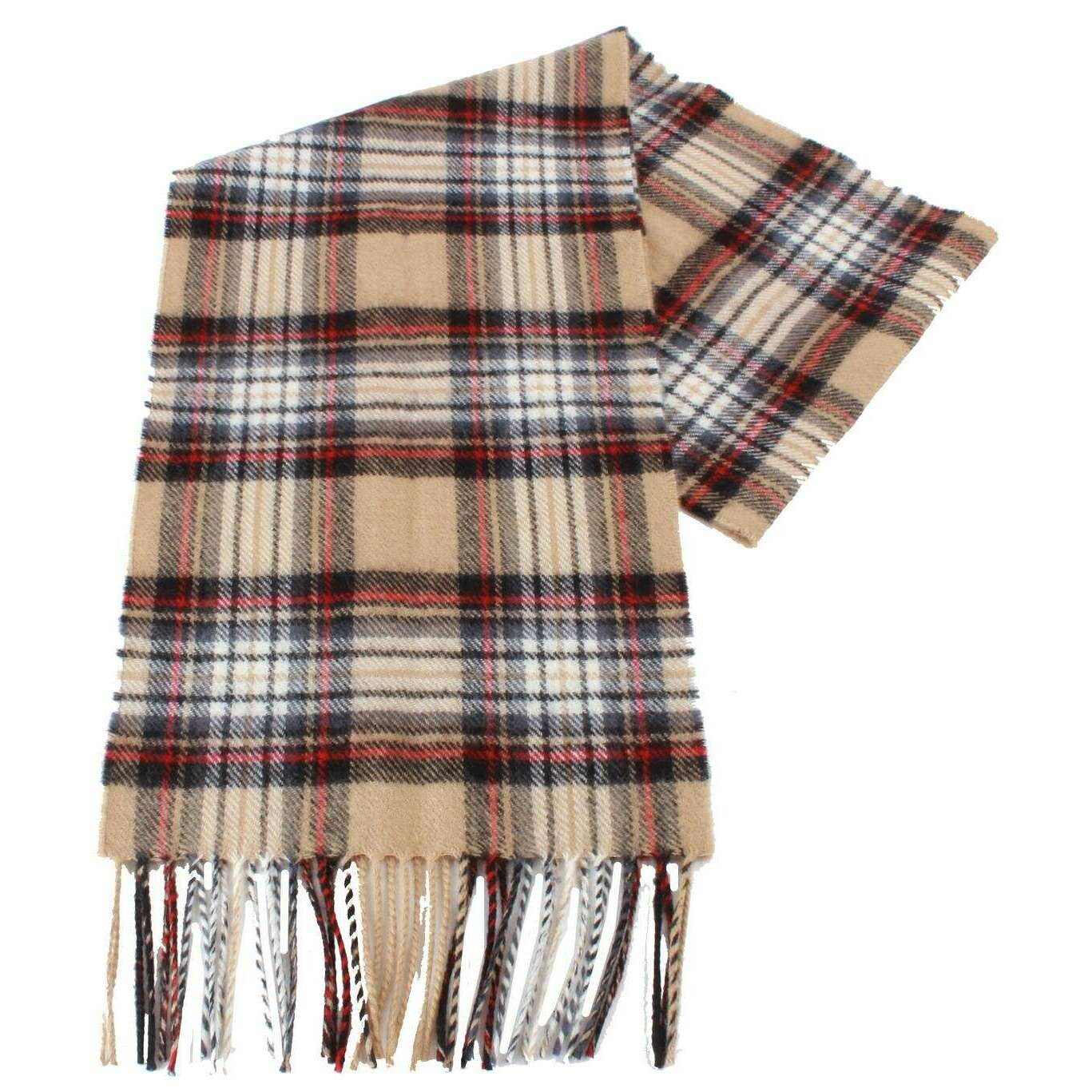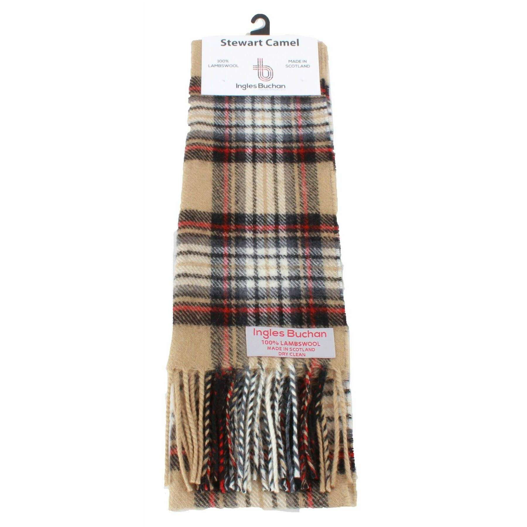 Ingles Buchan Stewart Camel Moderne Lamswollen Sjaal - Beige/Zwart/Rood