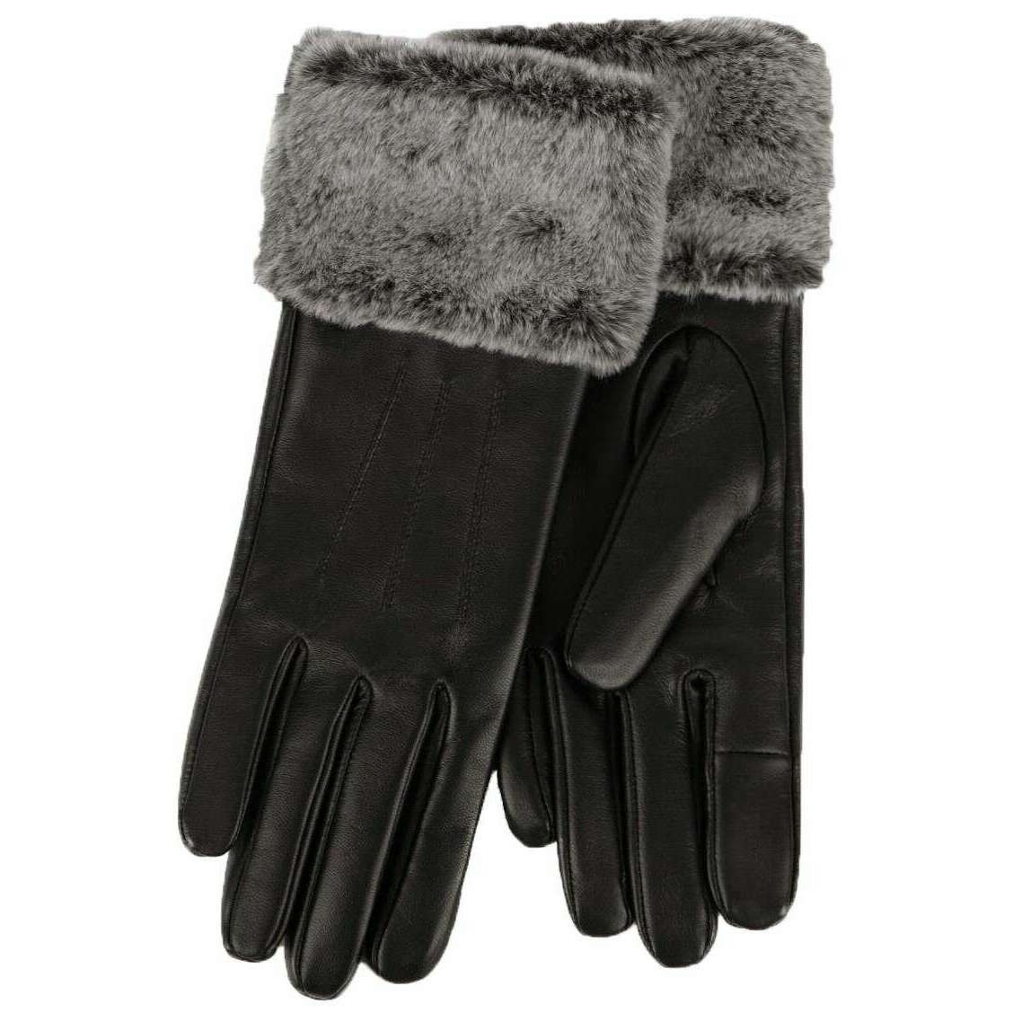 Isotoner SmarTouch™ lederen handschoenen met manchetten van imitatiebont - Zwart