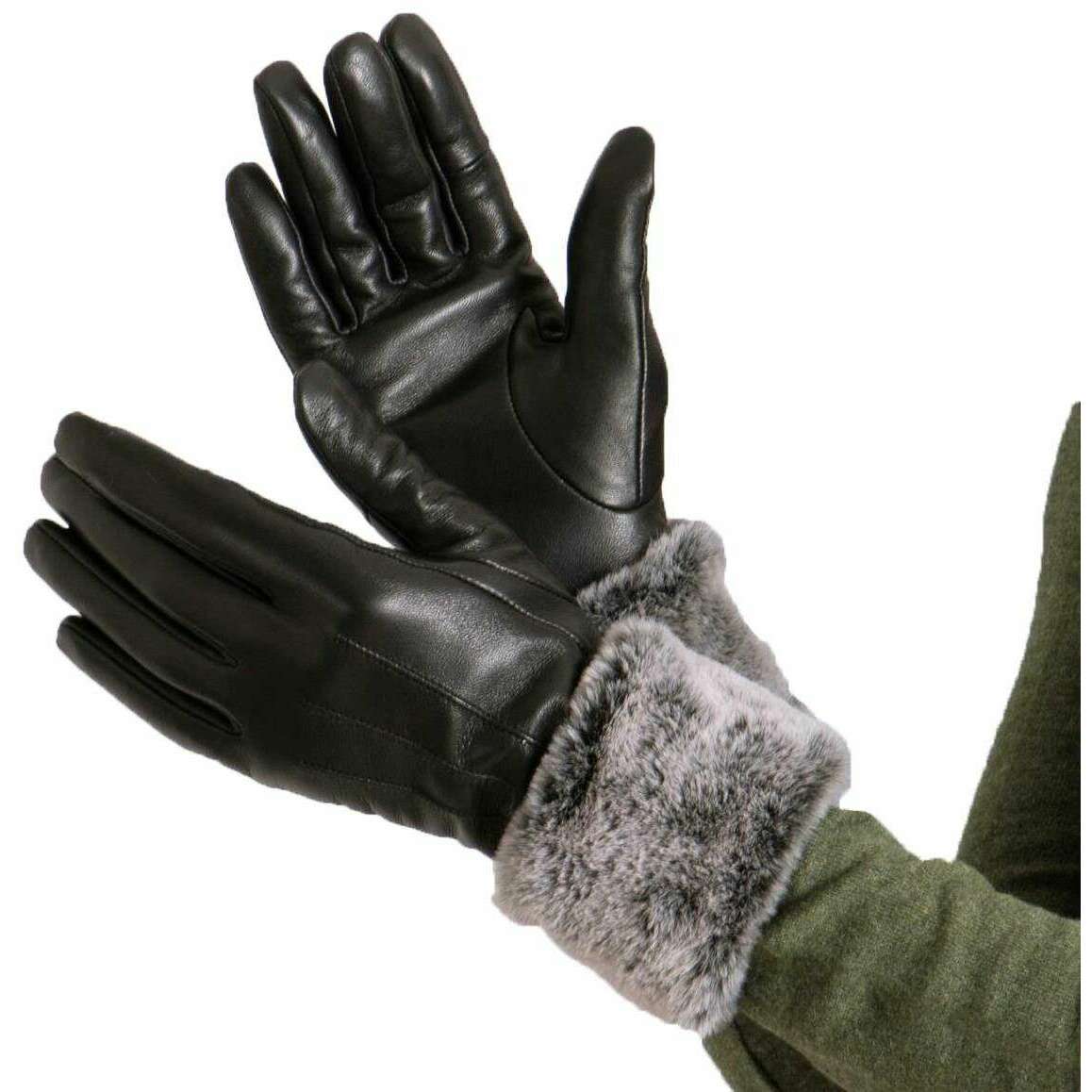 • Echt leer, SmarTouch-technologie op duimen en wijsvingers, Manchet van imitatiebont, Ultrazachte voering