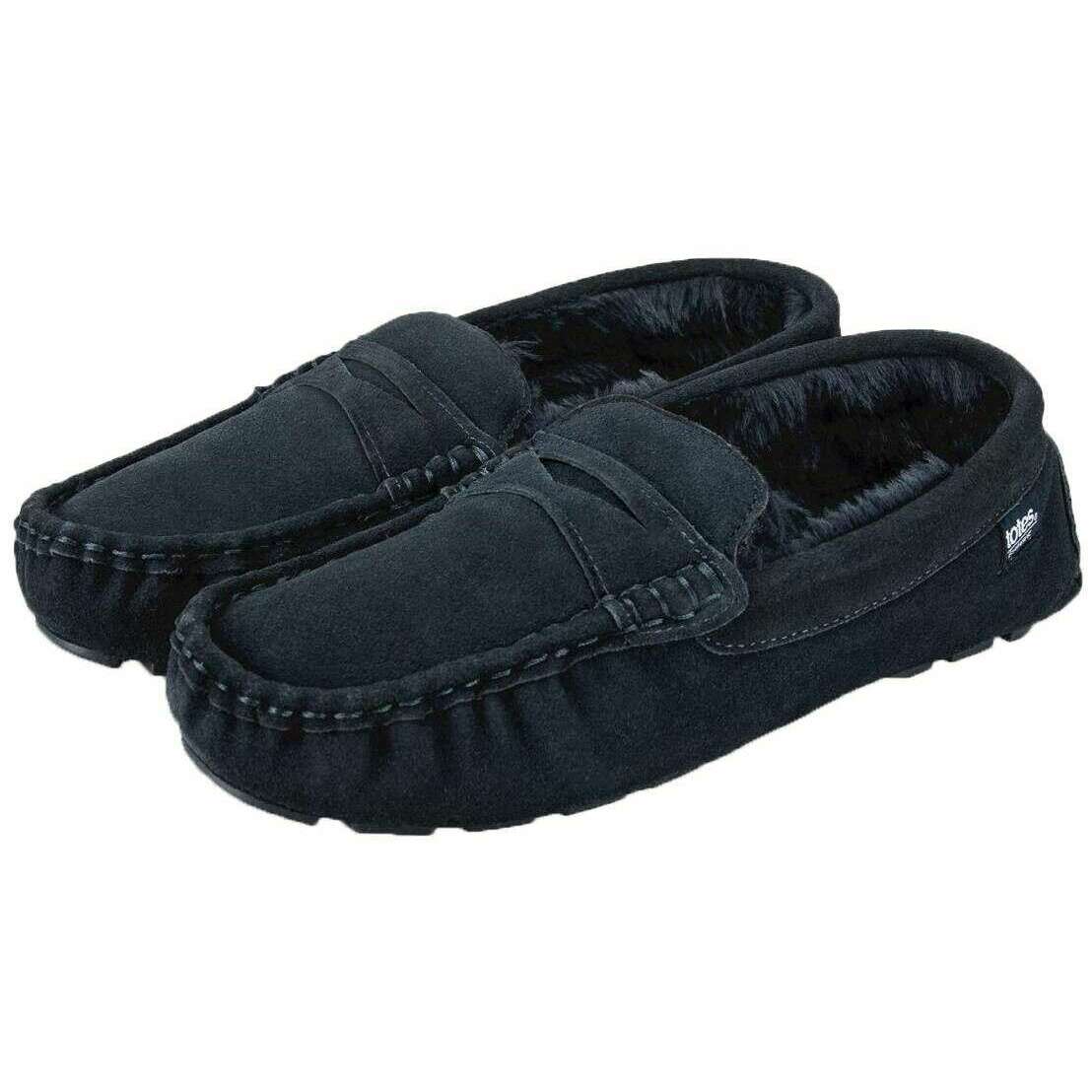 Deze suède mocassinpantoffels voor heren van het merk Isotoner zijn gemaakt van 100% suède buitenkant en polyester voering en zijn uitgevoerd in marineblauw. Ook de marineblauwe pantoffels zijn ontworpen in een effen patroon. Het wordt aanbevolen om deze niet te wassen en af ​​te vegen met een vochtige doek om deze pantoffels in goede staat te houden. Alle pantoffels worden compleet geleverd met isotonerverpakking. De Isotoner Suede Mocassin Slippers - Marineblauw zijn een geweldige aanvulling op de loungewearcollectie voor heren en zorgen voor stijl en verfijning, maar ook voor comfort, ondersteuning en warmte. De kussentechnologie met toegevoegd traagschuim geeft een wolkachtig gevoel, perfect om thuis te ontspannen. Afgewerkt met een duurzame flexibele zool voor een antislip loopvlak en ondersteuning en een waterafstotende slijtage.