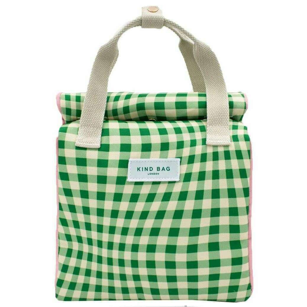 Vriendelijke tas London Lunch Bag - Vervormde Gingham Green/Pink