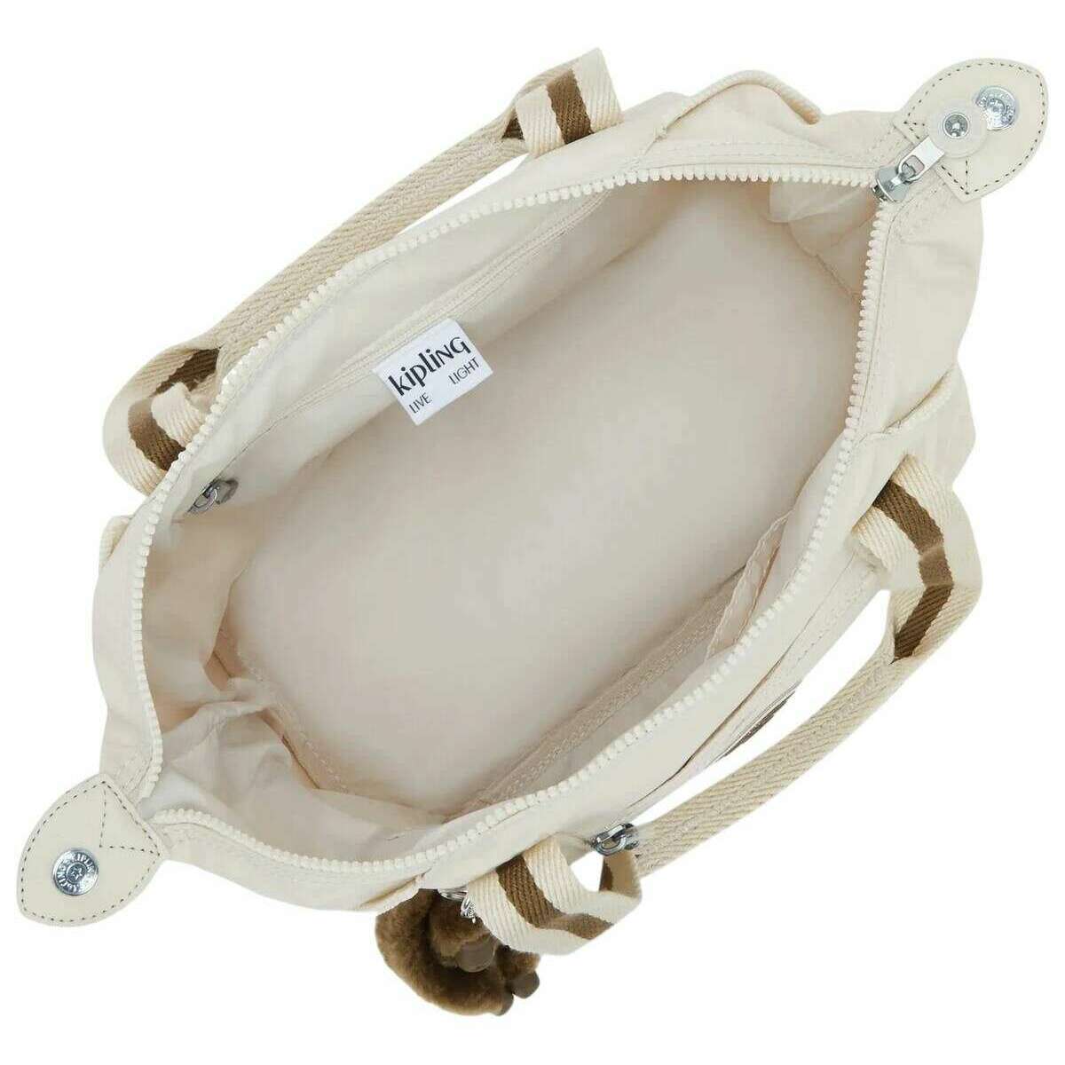 Perfect voor dames is deze Kipling zachte zandcrème kunst mini-draagtas, hij is ook gemaakt van 60% polyamide en 40% gerecycled polyamide. De afmetingen zijn 20 cm (hoogte) x 39 cm (breedte) x 18,5 cm (diepte). Alle tassen worden compleet geleverd met Kipling-verpakking. De Kipling Art Mini Tote Bag - Soft Sand Cream is een veelzijdige metgezel voor elke dag, ontworpen om zich aan te passen aan de behoeften van de drager. Met verstelbare hoeken die de grootte en het silhouet in een oogwenk veranderen, biedt hij moeiteloze flexibiliteit, of hij nu wordt gebruikt voor dagelijkse boodschappen, werk of weekenduitstapjes. Ondanks zijn compacte uiterlijk is deze lichtgewicht draagtas verrassend ruim, met een hoofdvak met ritssluiting en zorgvuldig ingedeelde vakken waarin je belangrijke spullen onderweg georganiseerd kunt houden. Het interieur is voorzien van een vak met ritssluiting en speciale telefoon-, pen- en portemonneevakken voor gemakkelijke toegang tot kleinere spullen. Aan de buitenkant bieden een ritsvak en een open voorvak handige opbergruimte voor spullen die je snel nodig hebt. De tas kan worden gedragen aan de dubbele handvatten aan de bovenkant voor een klassieke look, of de drager kan de hoeken openritsen, de afneembare en verstelbare riem bevestigen en overschakelen naar een handsfree schouder- of crossbody-stijl. Afgewerkt met een waterafstotende coating, het kenmerkende aapje van Kipling en het iconische ronde Kipling-logo, biedt de Art Mini een winnende combinatie van functionaliteit, duurzaamheid en speelse charme.