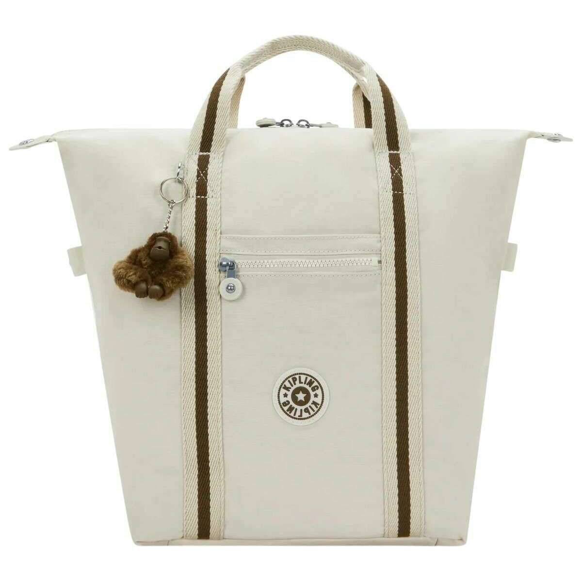 Deze nieuwe art medium damesrugzak van zacht zandcrème, aangeboden door het merk Kipling, is gemaakt van 100% gerecycled polyester. De afmetingen zijn 40 cm (hoogte) x 44,5 cm (breedte) x 13 cm (diepte). Alle tassen worden compleet geleverd met Kipling-verpakking. De Kipling New Art Medium Rugzak - Soft Sand Cream biedt een moderne draai aan het iconische Art-ontwerp van het merk en brengt frisse veelzijdigheid in de dagelijkse stijl. Opnieuw ontworpen voor werk, reizen en dagelijkse avonturen, met een slank silhouet gecombineerd met een praktische organisatie om de essentiële spullen onderweg netjes geordend te houden. Het ruime hoofdvak met ritssluiting opent en onthult vier functionele compartimenten, waaronder een speciaal laptopgedeelte voor apparaten tot 15 inch, een portemonneecompartiment en twee pennenlussen. Binnenin bevat de tas ook twee extra vakken, één met ritssluiting en één open, voor het moeiteloos opbergen van kleinere spullen. Aan de buitenkant bieden twee voorzakken, één met ritssluiting en één open, gemakkelijke toegang tot veelgebruikte spullen, terwijl een achterzak met ritssluiting veilige opslag biedt. Dankzij de ingebouwde sleutelriem zijn de sleutels gemakkelijk toegankelijk, en de kenmerkende aapsleutelhanger van Kipling zorgt voor een speelse finishing touch. De NIEUWE ART Medium-rugzak biedt de perfecte balans tussen stijl, functie en dagelijks aanpassingsvermogen.