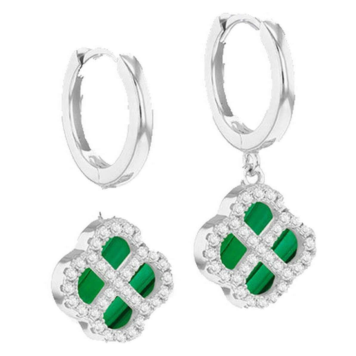 Deze dames oorringen van malachietklaver van het merk KJ Beckett zijn gemaakt van sterling zilver en zijn uitgevoerd in het groen. Alle oorbellen worden compleet met verpakking geleverd. De KJ Beckett Malachite Clover Hoop Earrings - Zilver/groen is een feest van charme en elegantie! Deze unieke oorringen van sterling zilver hebben een bedel van malachietklaver van 11 mm gecombineerd met een sprankelende hoepel van 1,1 mm met zirkonia-accenten, allemaal gemaakt van sterling zilver en afgewerkt met een gladde rhodiumlaag voor langdurige glans en weerstand tegen aanslag. Deze lichtgewicht en toch opvallende oorringen zijn perfect voor dagelijks gebruik en vormen een attent en stijlvol cadeau.