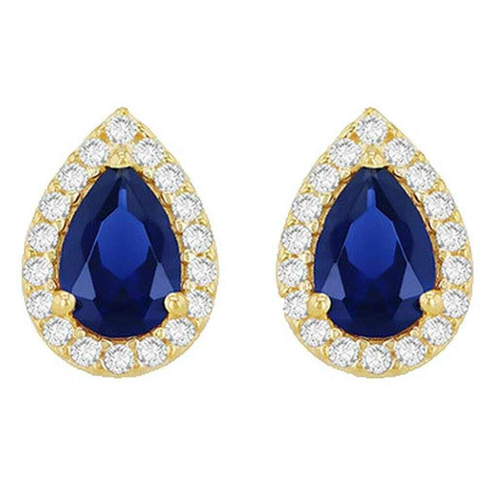 KJ Beckett Peervormige Halo Stud Oorbel - Geel Goud/Marineblauw