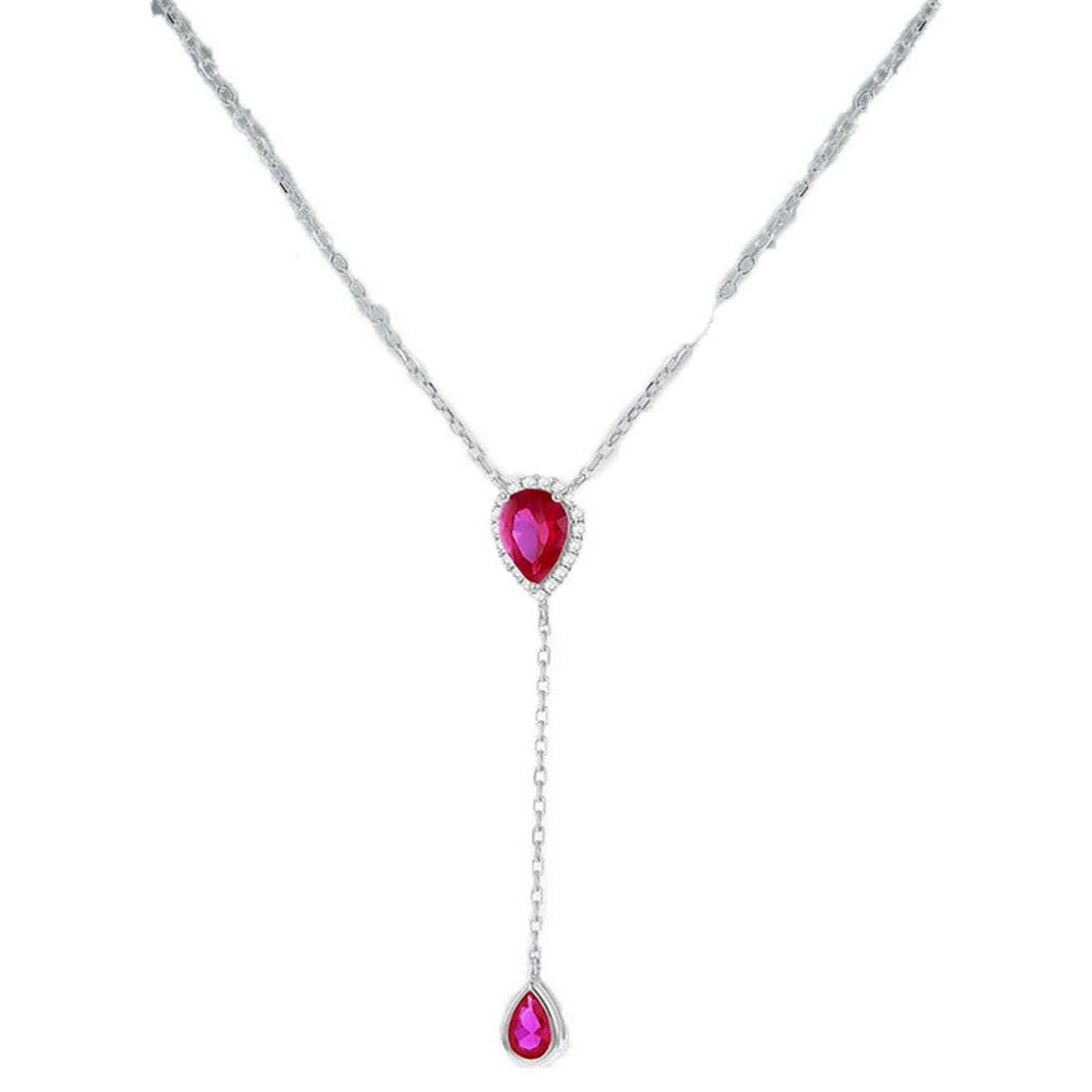 KJ Beckett Teardrop verstelbare Lariat ketting - zilver/rood