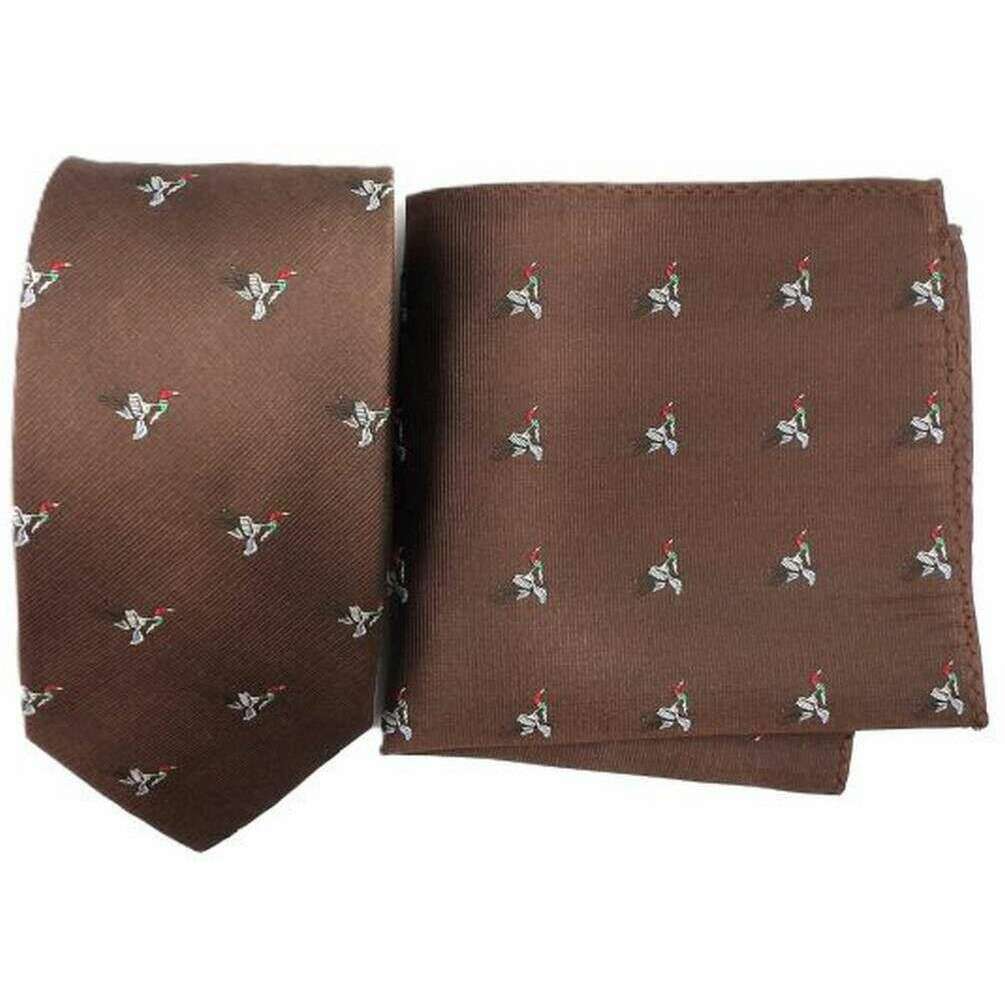 Knightsbridge Neckwear Duck Zijden Stropdas en Pochet Set - Bruin