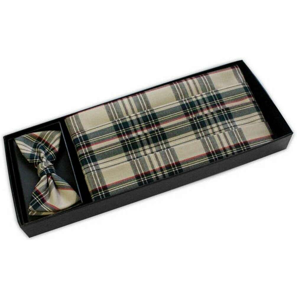 Knightsbridge Neckwear Tartan buikband en vlinderdasset - Beige