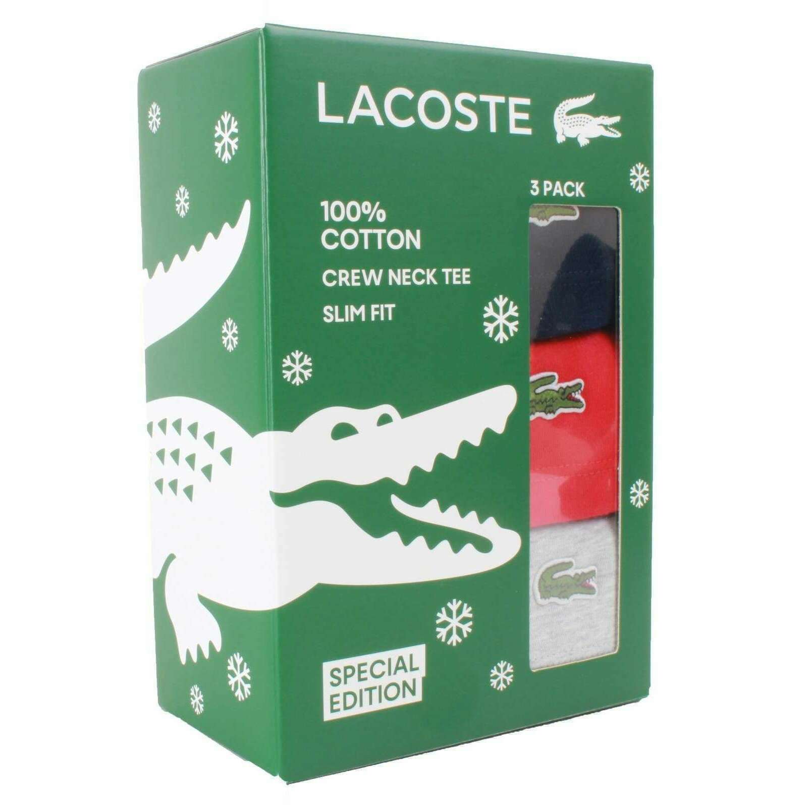 Lacoste Crew Neck Slim Fit Cotton 3 Pack T -shirts - Navy/Rood/Silver Chine Gray