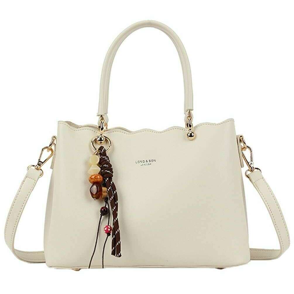 Deze crossbodytas met geschulpte rand van Long and Son is gemaakt van 100% wit polyurethaan en is perfect voor dames en een musthave. De afmetingen zijn 18 cm (hoogte) x 24,5 cm (breedte) x 11 cm (diepte). Alle tassen worden compleet geleverd met een long & son-verpakking. De Long and Son Scalloped Edge Crossbody Bag - Off White heeft een groot interieur met vakken, extra vakken aan weerszijden van de rits die bij elkaar worden gehouden met magnetische sluitingen voor extra opbergruimte en voetnoppen voor bescherming bij het neerzetten. Deze tas kan zowel als crossbody als als handtas worden gebruikt met de twee handvatten en een afneembare, verstelbare crossbodyband. Ideaal voor een dagelijkse tas vanwege de veelzijdigheid en optimale opbergruimte. Compleet met geschulpte details voor een meisjesachtig tintje.