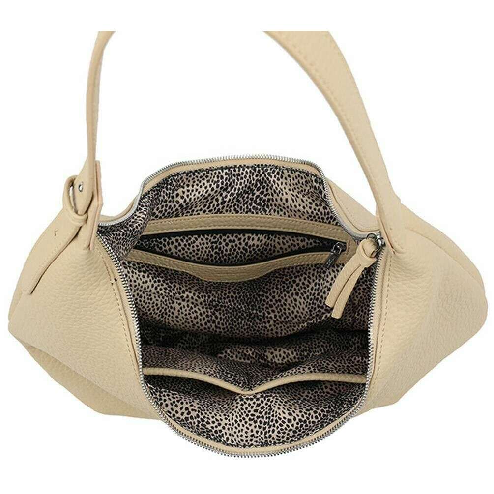Deze beige schoudertas voor dames, aangeboden door het merk Long and Son, is gemaakt van 100% polyurethaan. De afmetingen zijn 38 cm (hoogte) x 44 cm (breedte) x 11 cm (diepte). Alle tassen worden compleet geleverd met een long & son-verpakking. De Long and Son Scoop Schoudertas - Beige, stijlvol en praktisch, is een must-have in de collectie van elke vrouw. Dankzij de verstelbare schouderband kun je je handen vrij en comfortabel dragen, terwijl het grote interieur en de vakken optimale opslag en organisatie mogelijk maken, ongeacht de gelegenheid. De kunstleren buitenkant geeft een luxueus gevoel, is diervriendelijk en ziet er chic uit.
