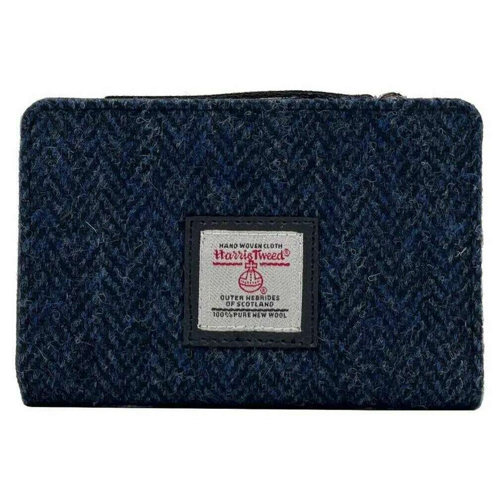Maccessori Harris Tweed portemonnee met medium ritssluiting - marineblauw