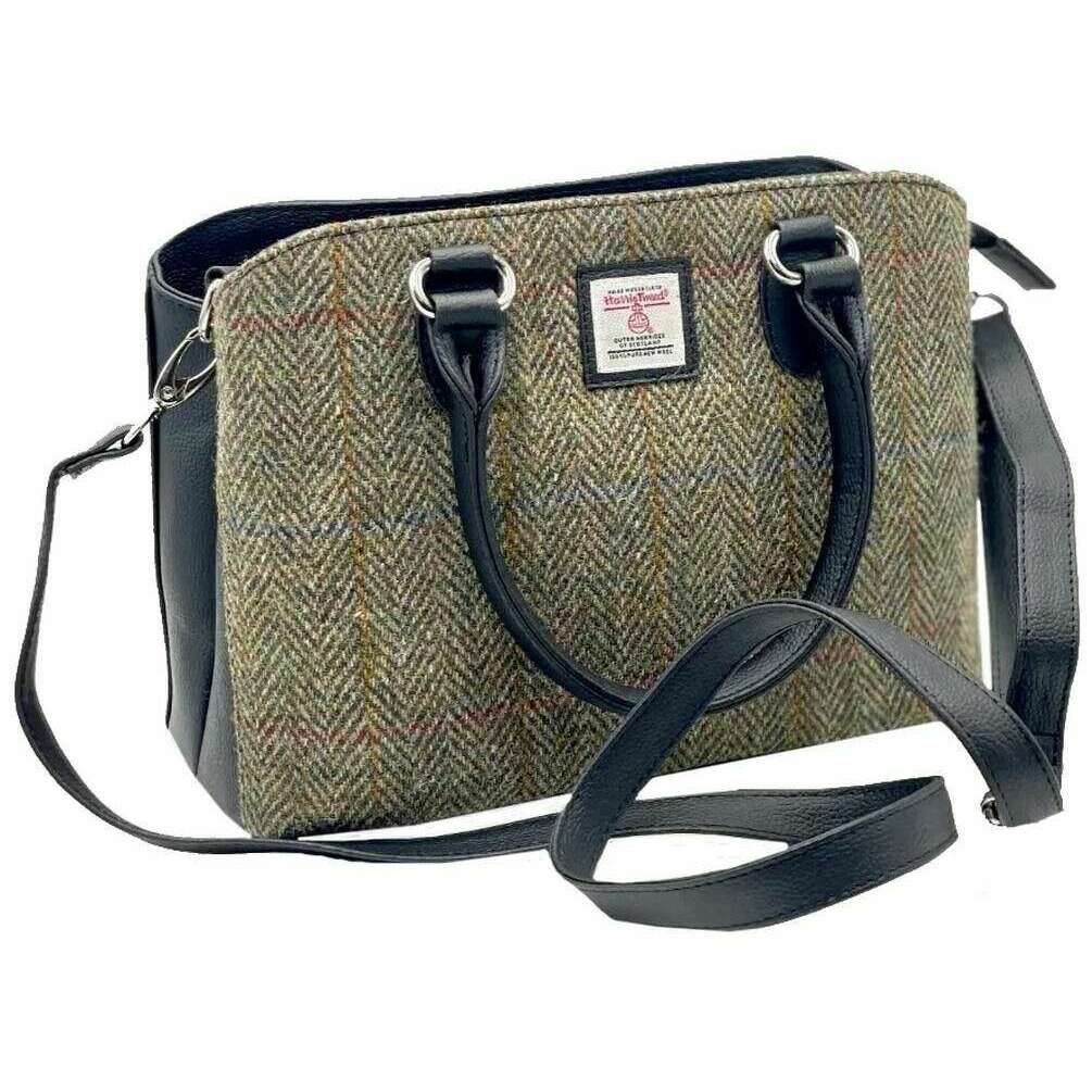 Maccessori Harris Tweed tas met handvat aan de bovenkant - landgroen
