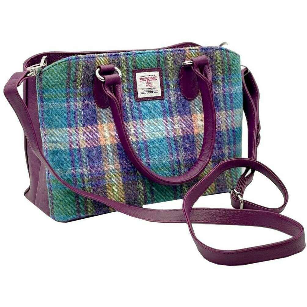 Maccessori Harris Tweed tas met handvat aan de bovenkant - groen/paars