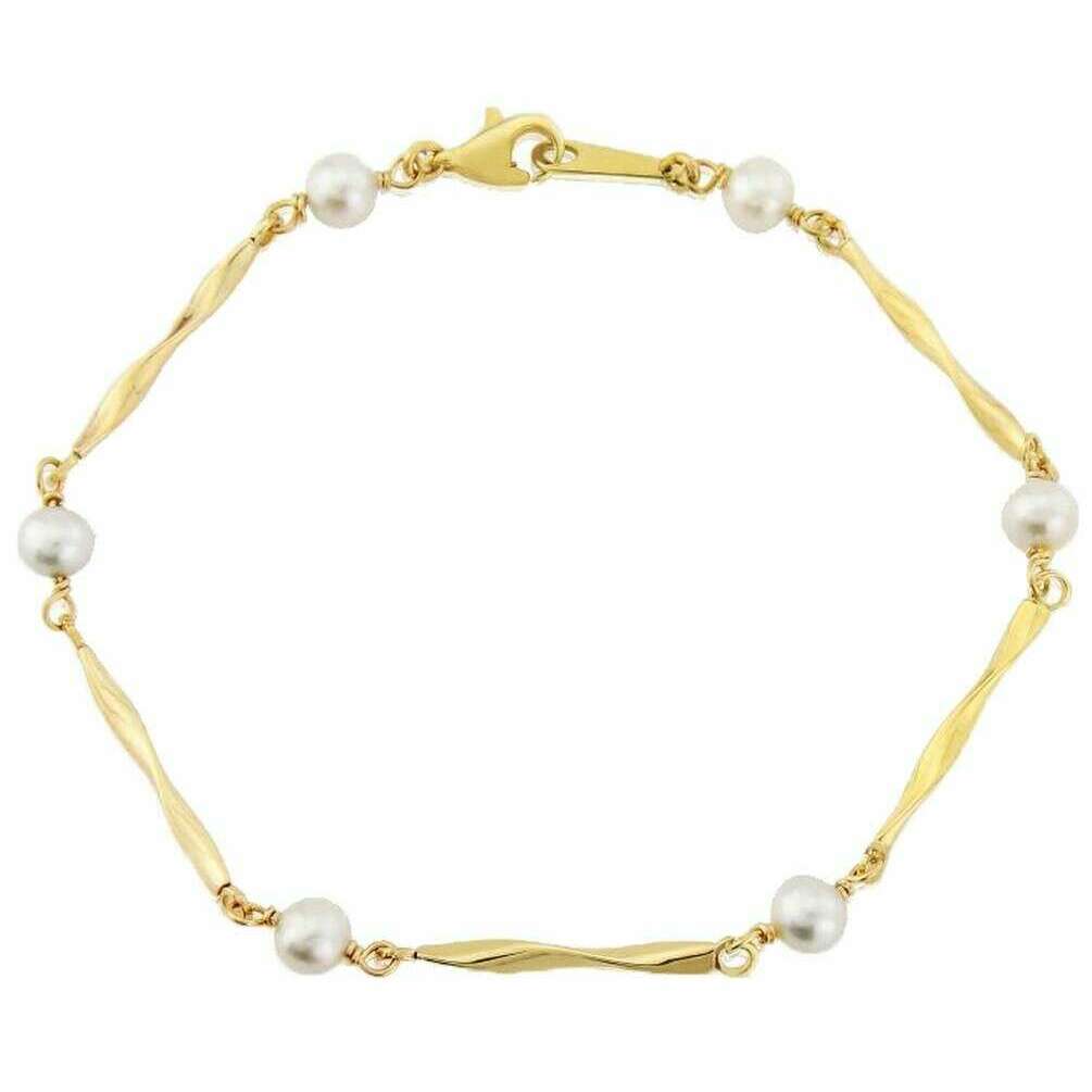 Mark Milton Cultured Pearl Link-armband - Geel goud/wit