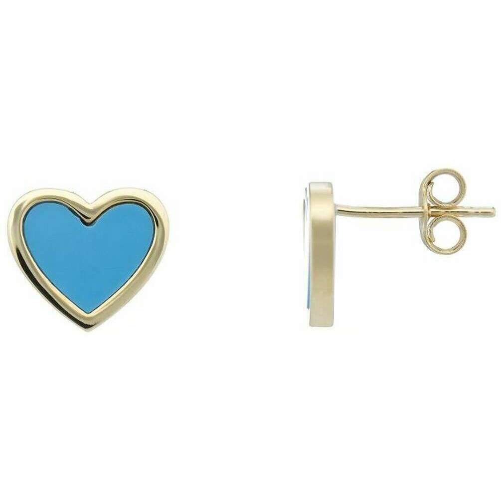 Deze damesoorbellen met hartjes van het merk Mark Milton zijn gemaakt van 9kt goud en zijn in goud weergegeven. Het meet 0,9 cm (hoogte) x 1 cm (breedte) x 0,2 cm (diepte). Alle oorbellen worden compleet geleverd met een Mark Milton-verpakking. De Mark Milton Heart Earrings - Yellow Gold/Turquoise Blue zijn een prachtig paar gouden oorbellen met een hartontwerp van blauwe steen. Dit paar elegante oorbellen zijn geweldig om cadeau te doen aan je dierbaren, of een perfect basisstuk voor in je garderobe.
