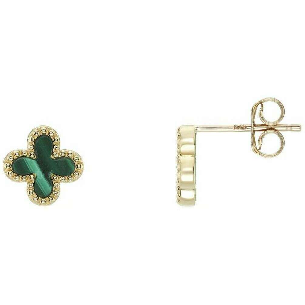 Mark Milton Malachiet Bloem Stud Oorbellen - Geel Goud/Groen
