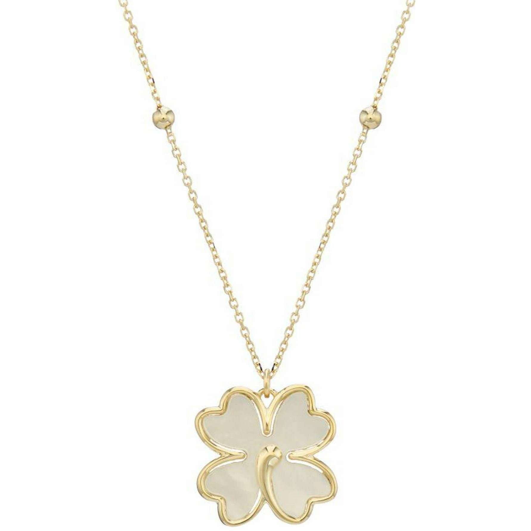 Mark Milton Parelmoer Klaver Hanger - Geel Goud/Wit