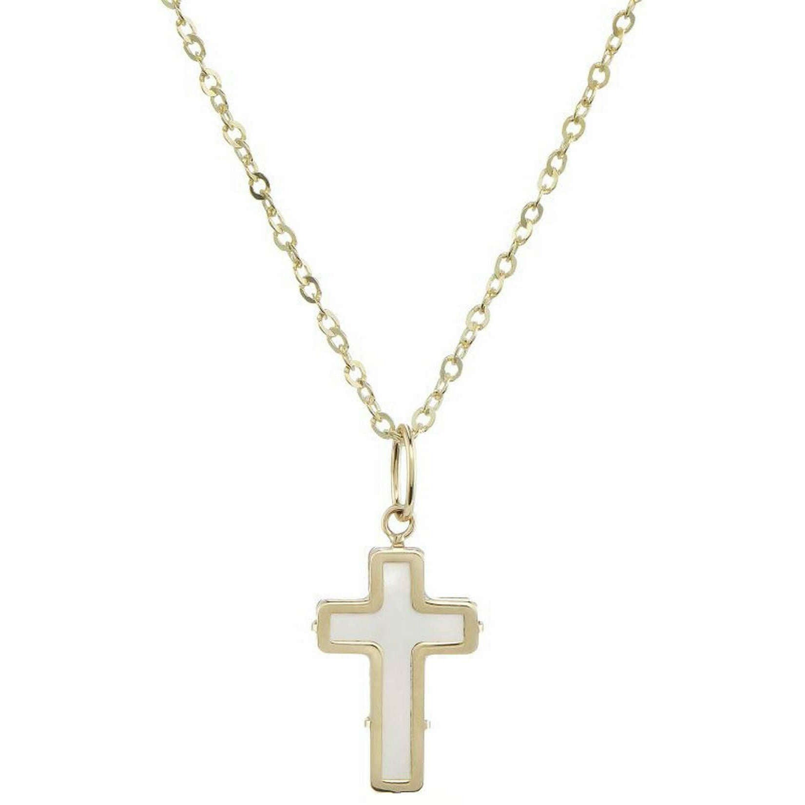 Deze geelgouden/witte damesparelmoer kruishanger van ontwerper Mark Milton is vervaardigd uit 9 karaat goud. Het meet 46 cm (lengte). Alle hangers worden compleet geleverd met een Mark Milton-verpakking. De Mark Milton Parelmoer Kruishanger - Geel Goud/Wit heeft een eenvoudige parelmoer stenen kruishanger aan een gouden ketting. Deze ketting is uniek en heeft een opvallend ontwerp, perfect om dagelijks te dragen of als cadeau voor een geliefde.