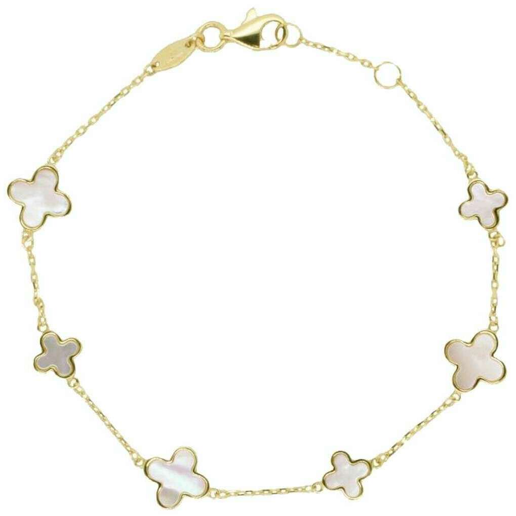 Mark Milton Parelmoer Bloem Armband - Geel Goud/Wit