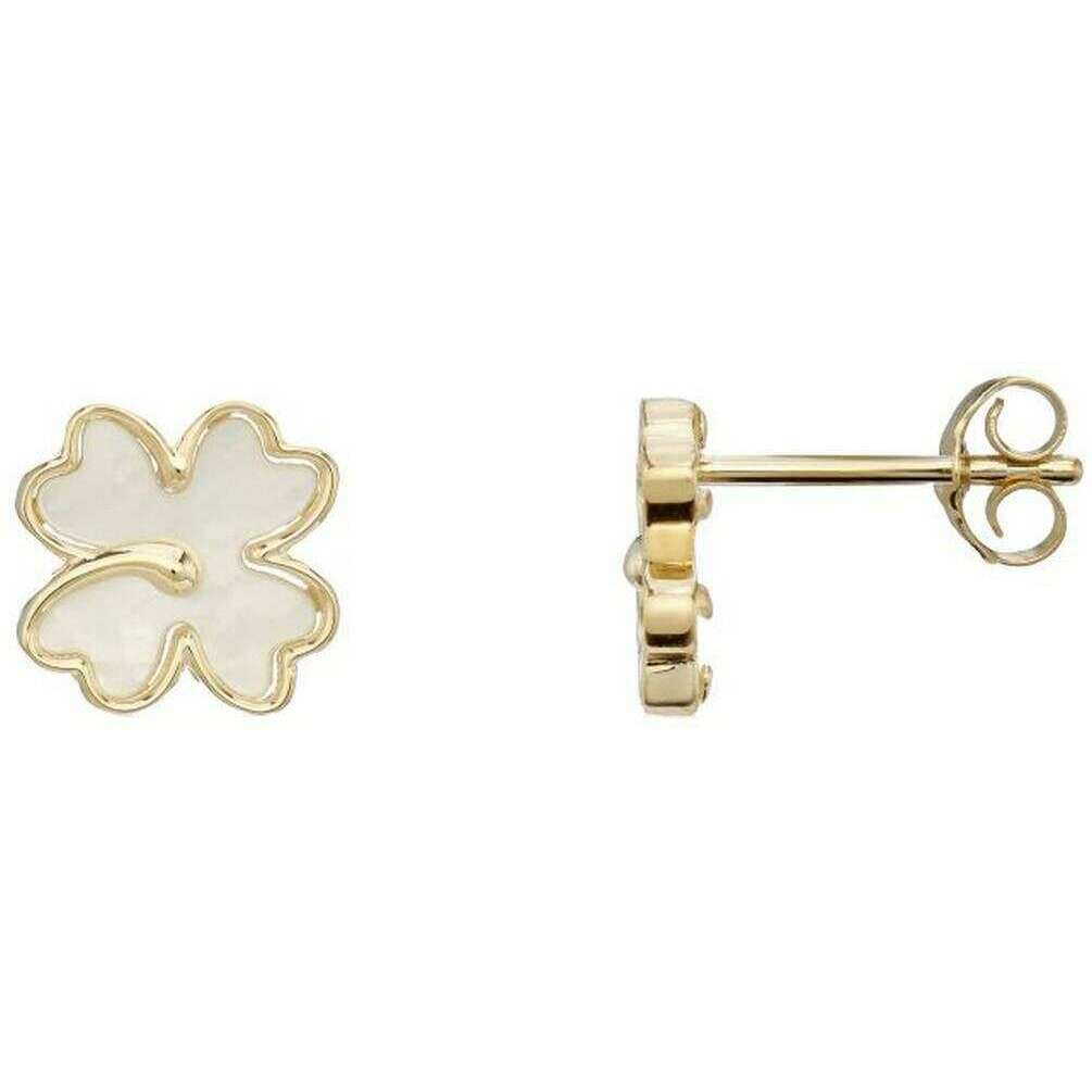 Mark Milton Parelmoer Klavertje Vier Oorknopjes - Geel Goud/Wit